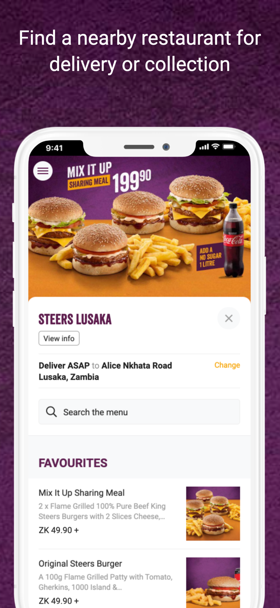 You can now order and pay for your flame-grilled meals through the official Steers app. Find your nearest restaurant, choose from our range of products, customise your order and checkout.