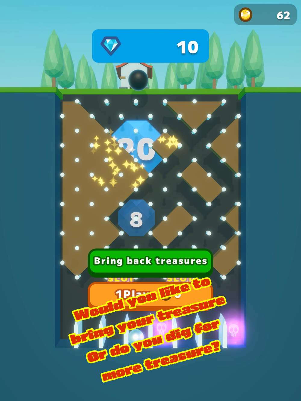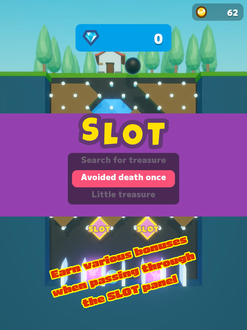Roll the ball and dig the hole to get the treasure. Make your house bigger!