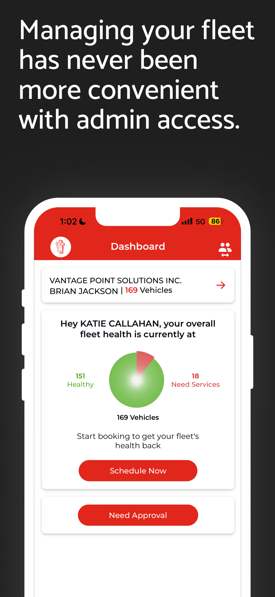 Fuelman Maintenance offers new features to manage your fleet entirely from the app. Fleet admins can select from which fleet to manage, add a driver to a fleet, assign a vehicle to a driver, and view fleet health reports on the dashboard.