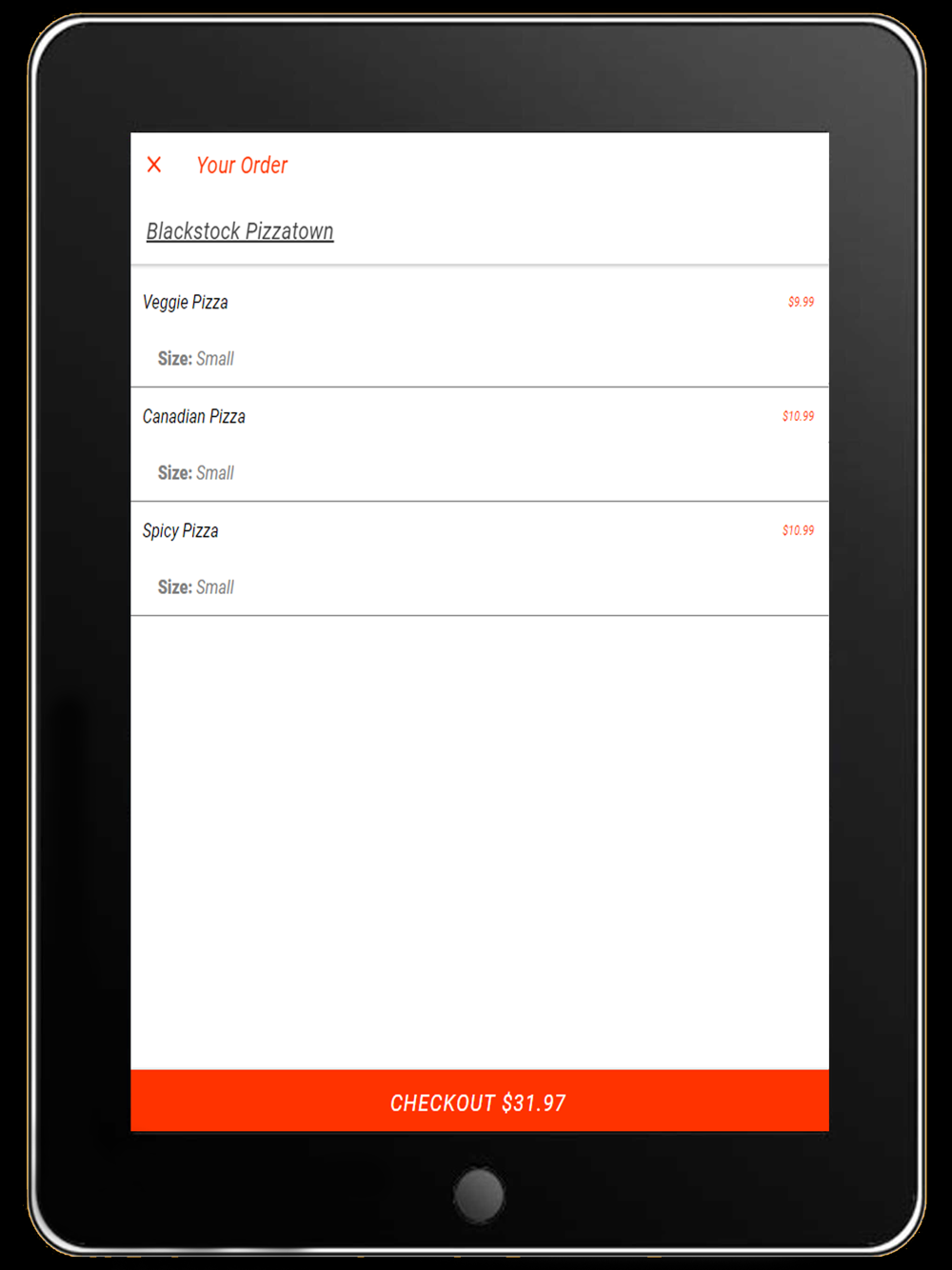 Food ordering system for the blackstock pizza restaurant.