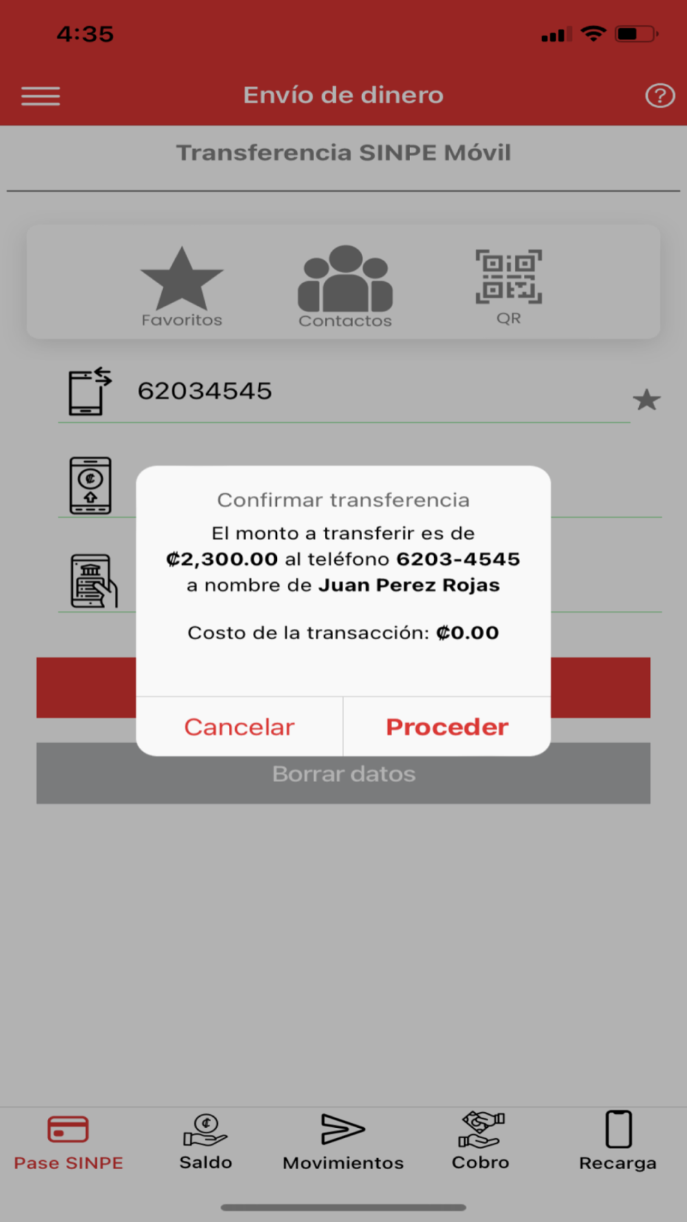 • Transfiera dinero a otras cuentas afiliadas a SINPE Móvil