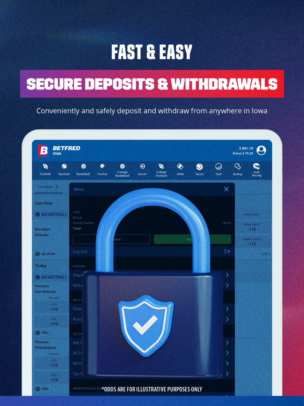 Our certified betting app offers quick deposit methods and even faster payout and withdrawal options! Register today and start betting on all your favorite teams and players. Sign up today for FREE to legally bet on every sport — including pro and college football, basketball, baseball, hockey, soccer, tennis, MMA, boxing and more! Cash out your winnings ultra-fast, collect your rewards, and get all the safety, security, and service you should expect when you bet with one of the top legal sportsbooks. At Betfred Sportsbook, you are in control of how and when you bet, with live in-game wagering, same game parlays, cross game parlays, futures, teasers, round robins, alternate lines, prop bets, and more! It is quick and simple to get started: