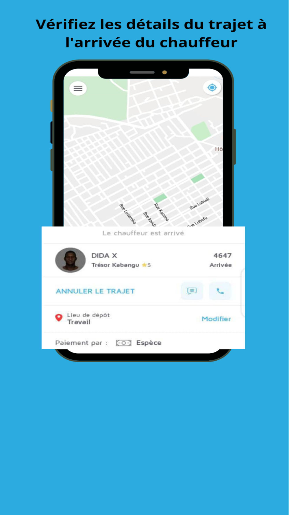 A quoi sert de marcher jusqu'à une arret de taxis quand on a DIDA avec soi ? Tout ce que vous avez à faire est de demander un taxi en cliquant sur un bouton. L'application indiquera l'emplacement précis de l'endroit où vous avez demandé votre DIDA, ce qui permettra au chauffeur de vous trouver plus facilement. Vous pouvez également voir sur l'application à quel endroit se trouve votre chauffeur.