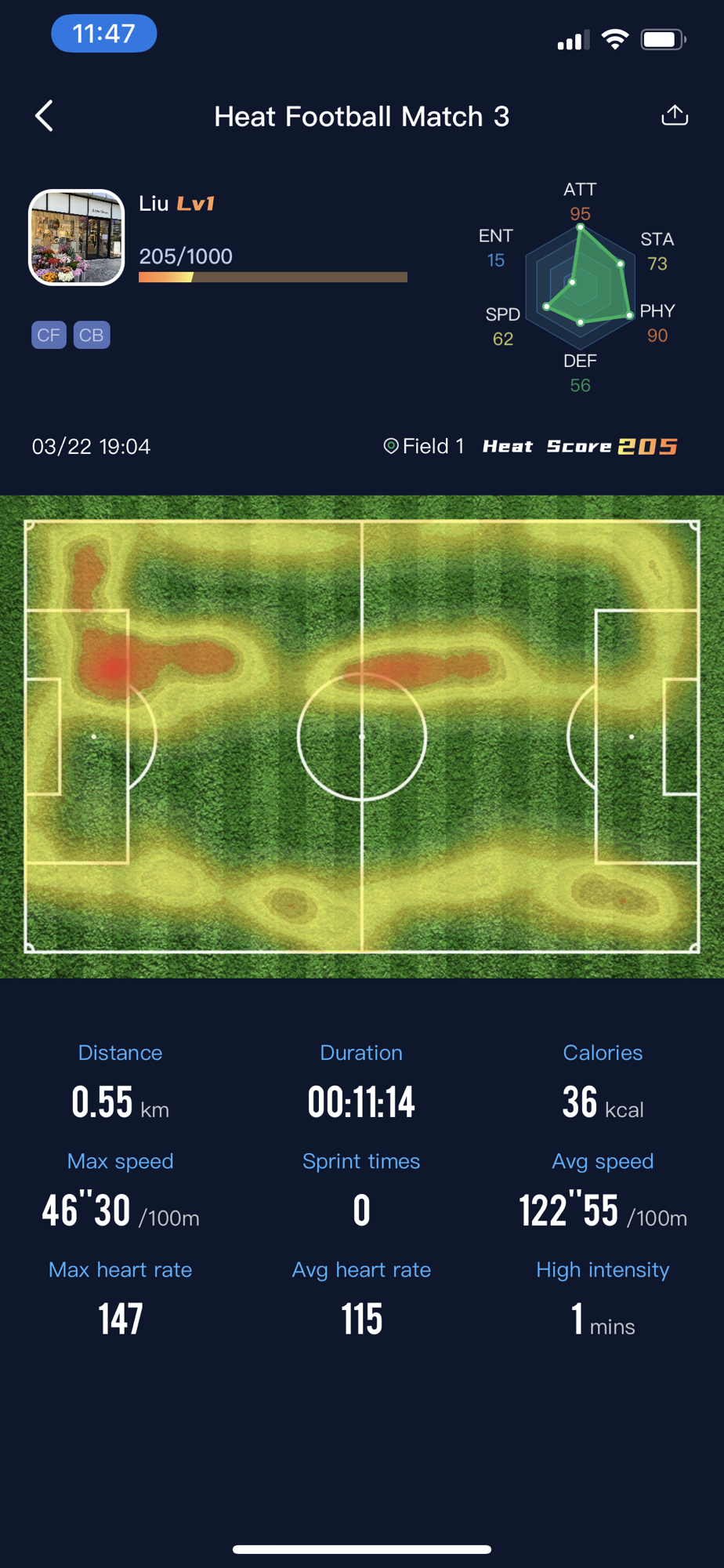 Heat Football is an app specifically for football fans to record your match data. It'll present your performance in each match in the form of heat map.