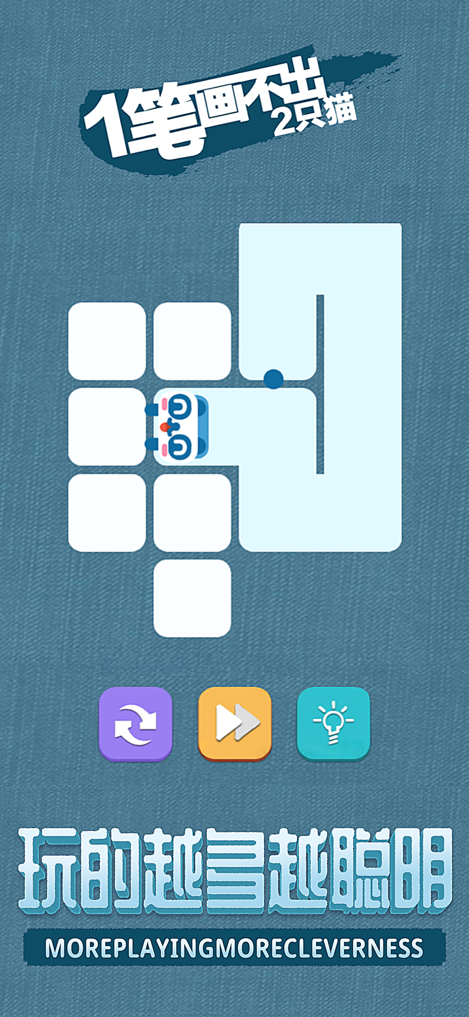 玩法:手指在屏幕上滑动,从猫咪头部开始逐个填满屏幕上的方格,需要注意的是线路不可交叉,且必须一笔填满所有方格