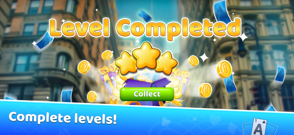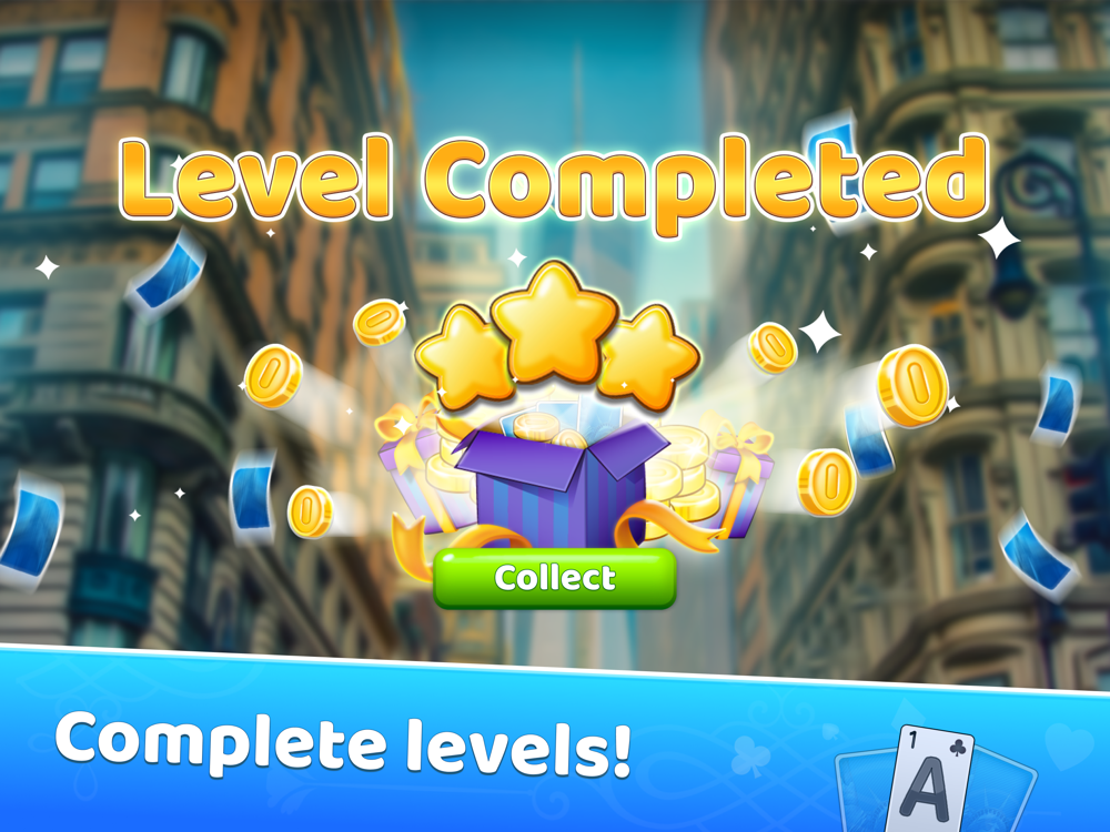 Each level has a Tripeaks Solitaire layout to make the levels fun, challenging and addictive.