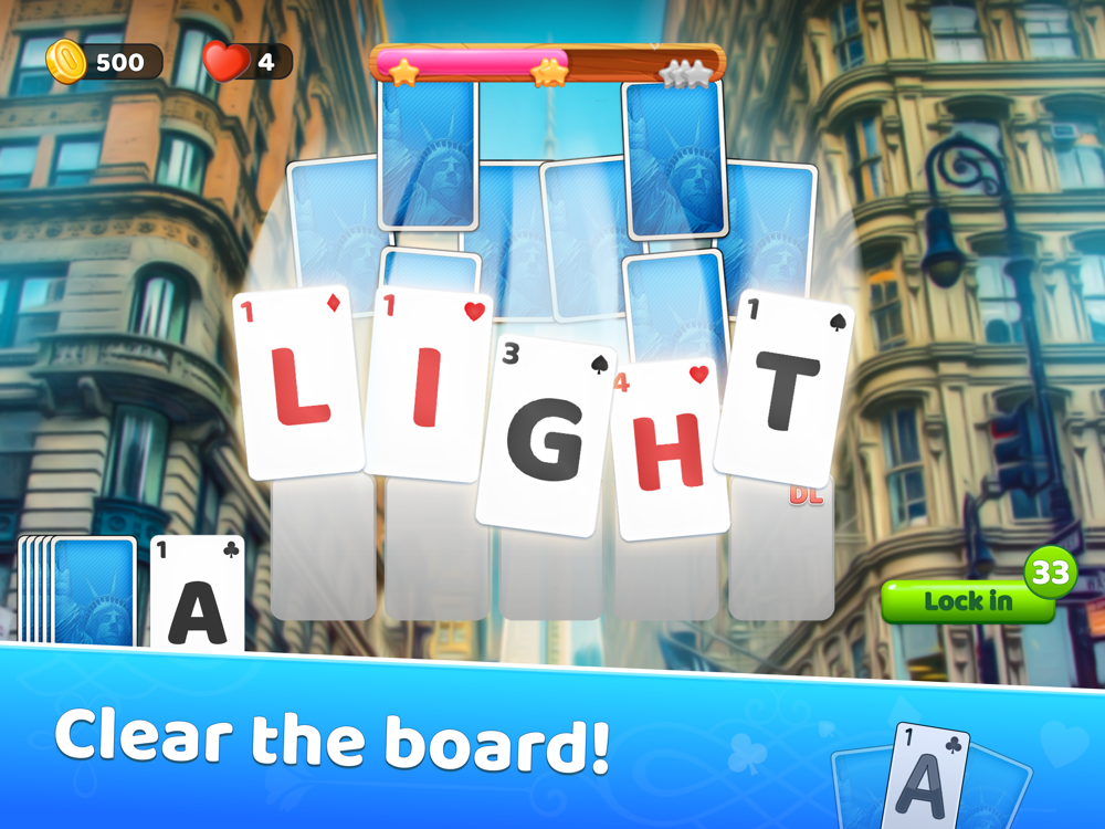 • BUILD WORDS: Each card in the Solitaire puzzle contains a letter that you can use to form a word.