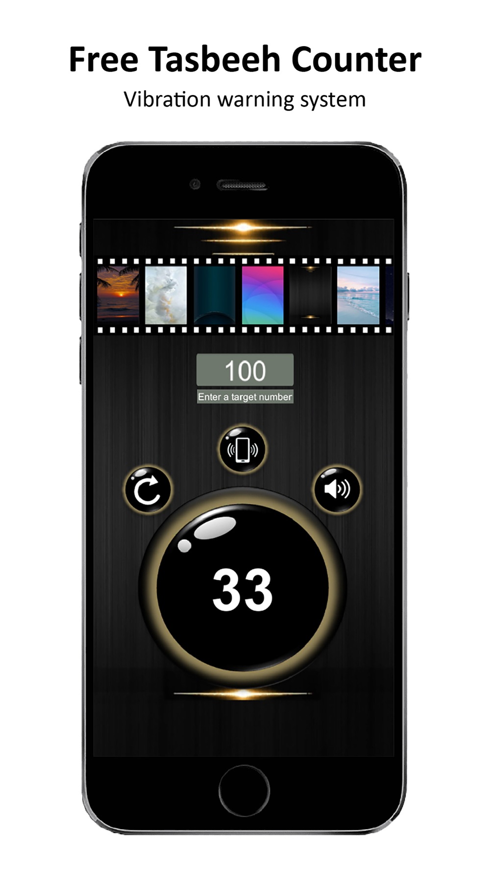 In Tasbeeh Pro app, you can select the theme you want for free from the filmstrip at the top of the app. You can continue your tasbeeh in 18 different themes prepared for you. Themes are not limited to what appears on the screen. You can slide the filmstrip left-right to see more.