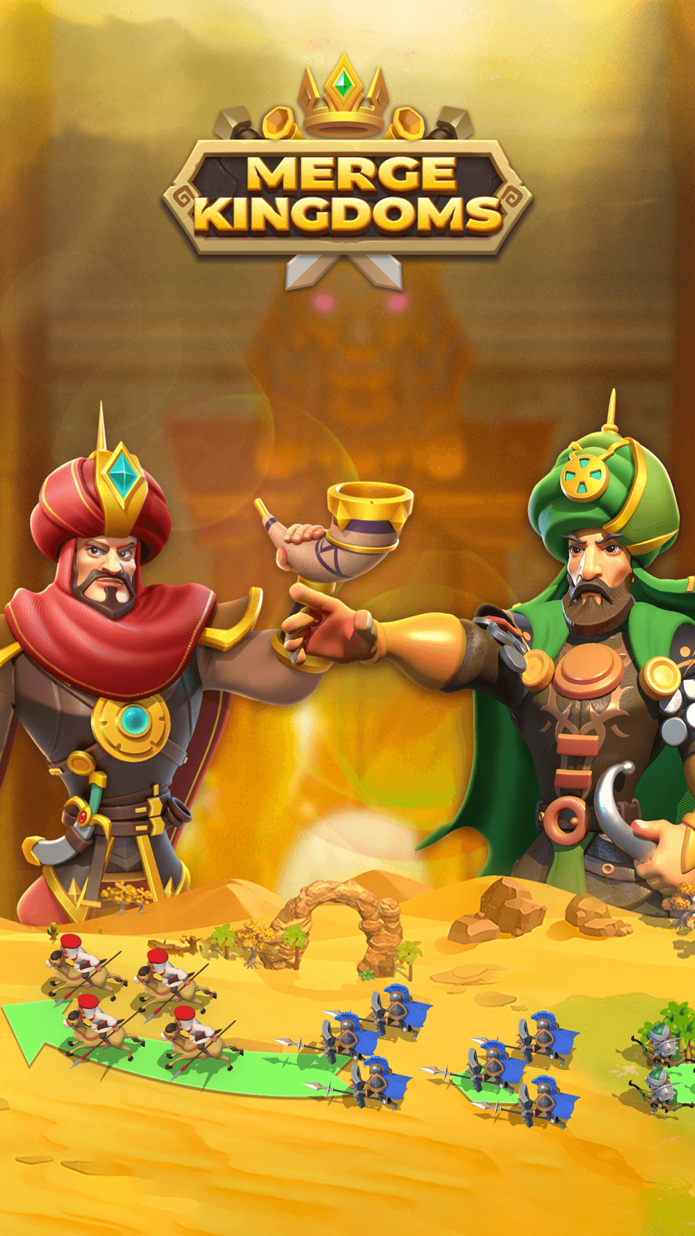 Do you have what it takes to become the strongest warlord? Merge troops & buildings to upgrade them easily!