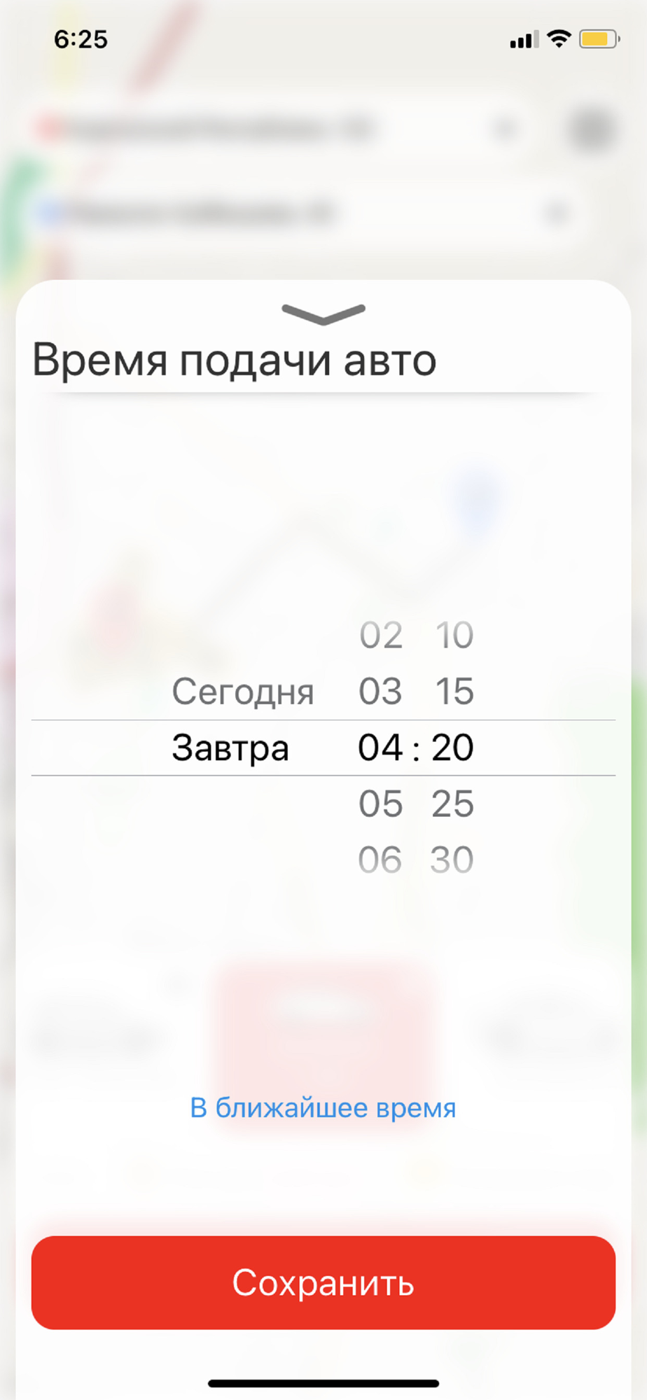 Мы быстро найдём свободную машину рядом с вами. Среднее время подачи — 5-10 минут.