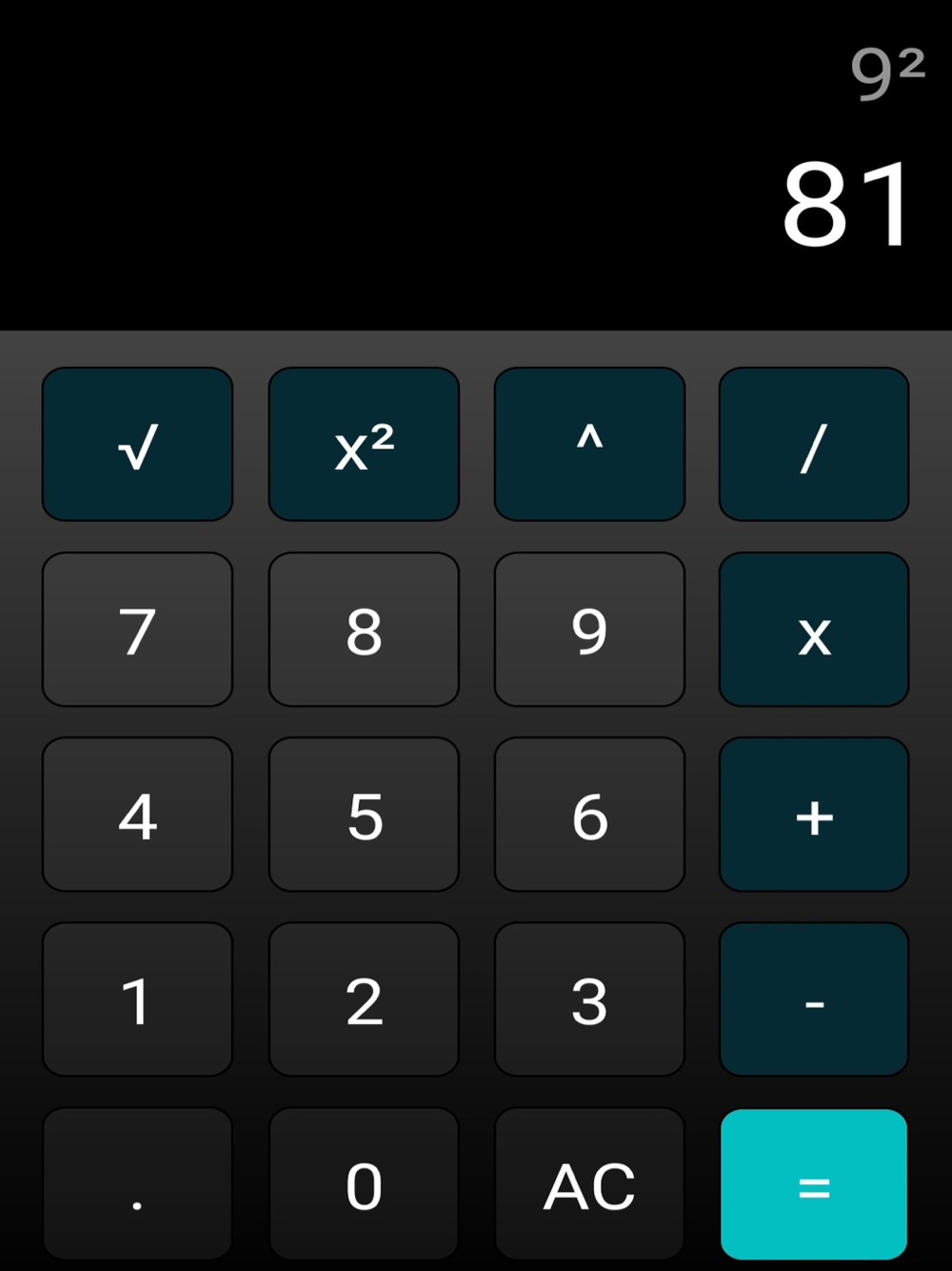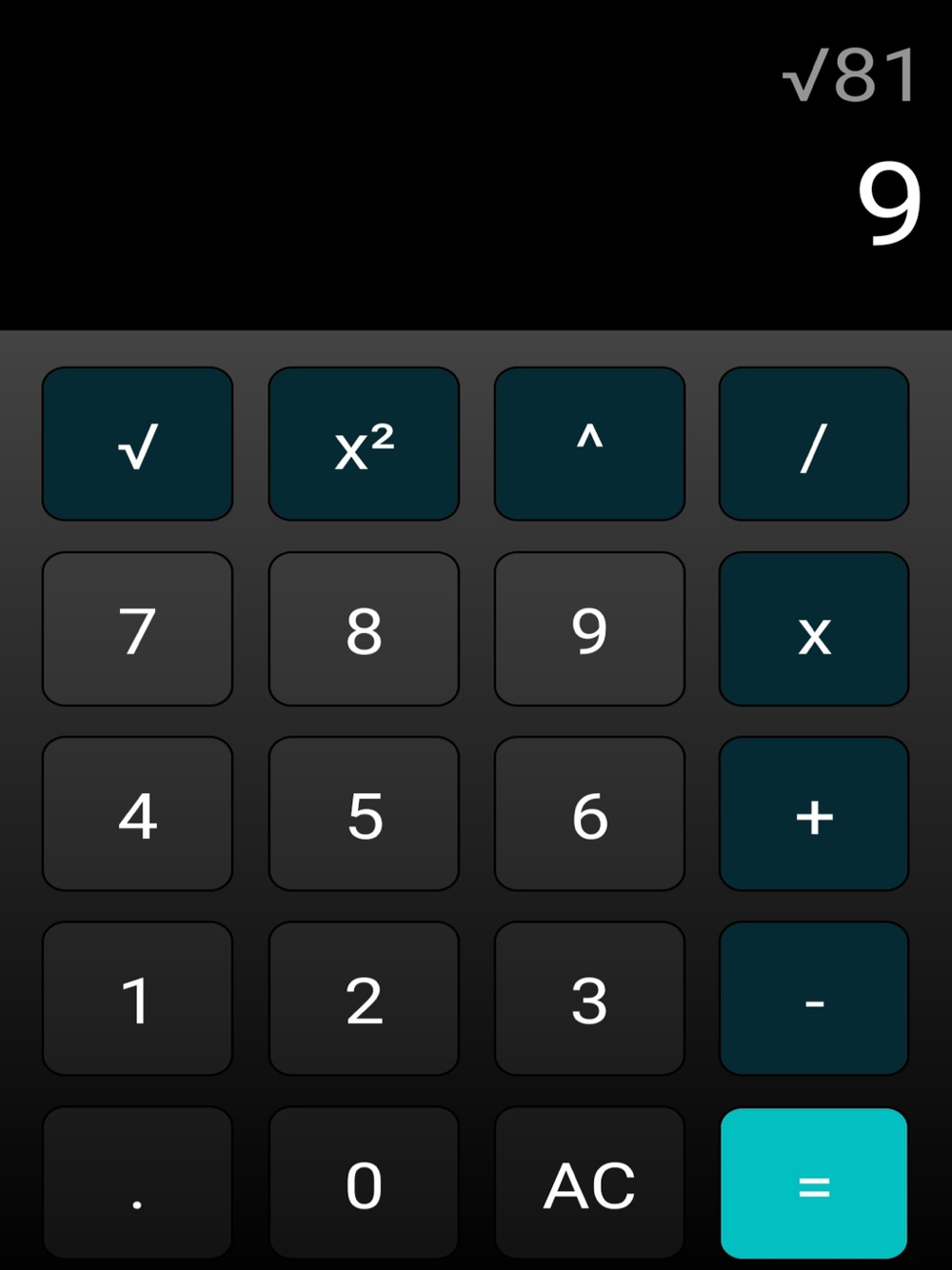 Kullanımı kolay, şık tasarımı ile hesaplamalarınızı pratik bir şekilde yapabileceğiniz bir hesap makinesi uygulaması. İşlemler: Toplama, çıkarma, çarpma, bölme, üs alma, karekök alma, kare alma