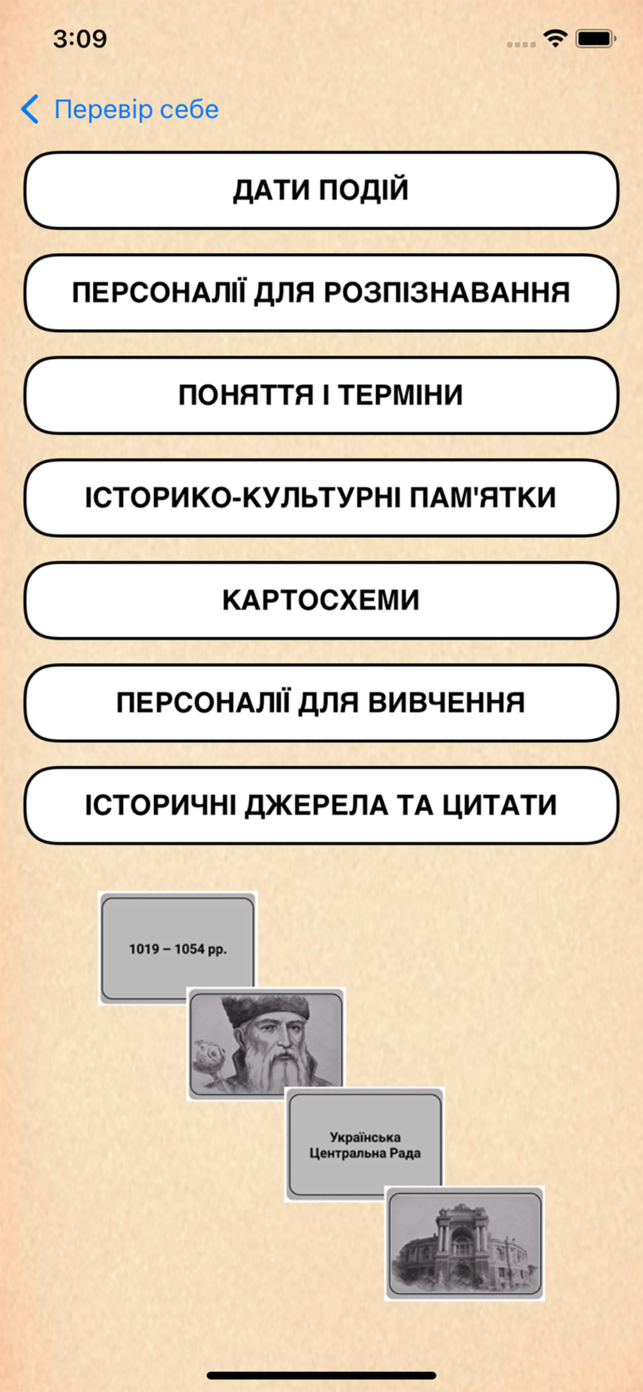 • 54 персоналії та близько 100 картосхем для розпізнавання;