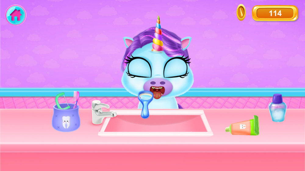 Mouth Cleaner: Clean pretty baby’s mouth by using mouth wash. Brush her teeth and clean the tongue of unicorn baby pony thoroughly using tongue cleaner in unicorn games.