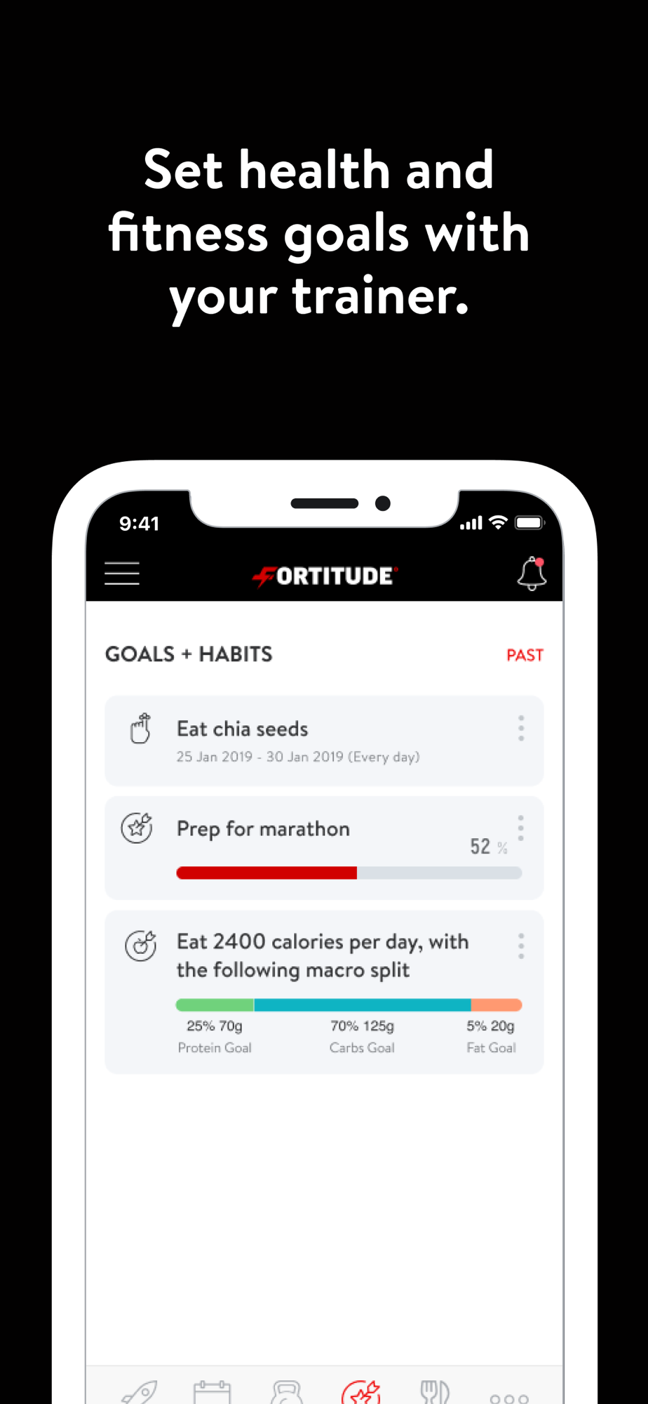 With the Fortitude Coaching App, you can start tracking your workouts and meals, measuring results, and achieving your fitness goals, all with the help of your trainer or coach.