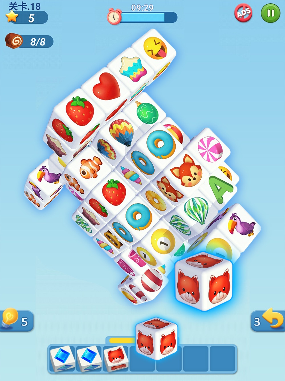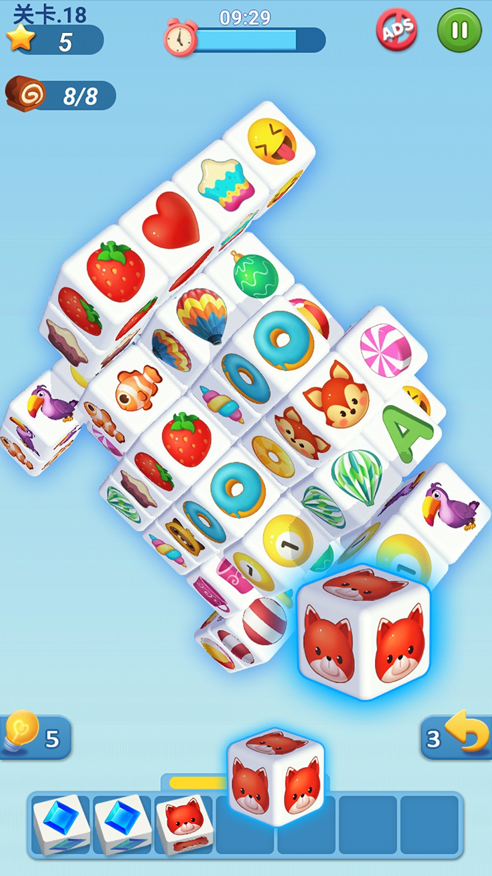 Match 3d是一款经典的配对比赛游戏!游戏易上手,难精通!!非常有趣,可以放松大脑,锻炼空间思维能力,很适合全家一起玩!