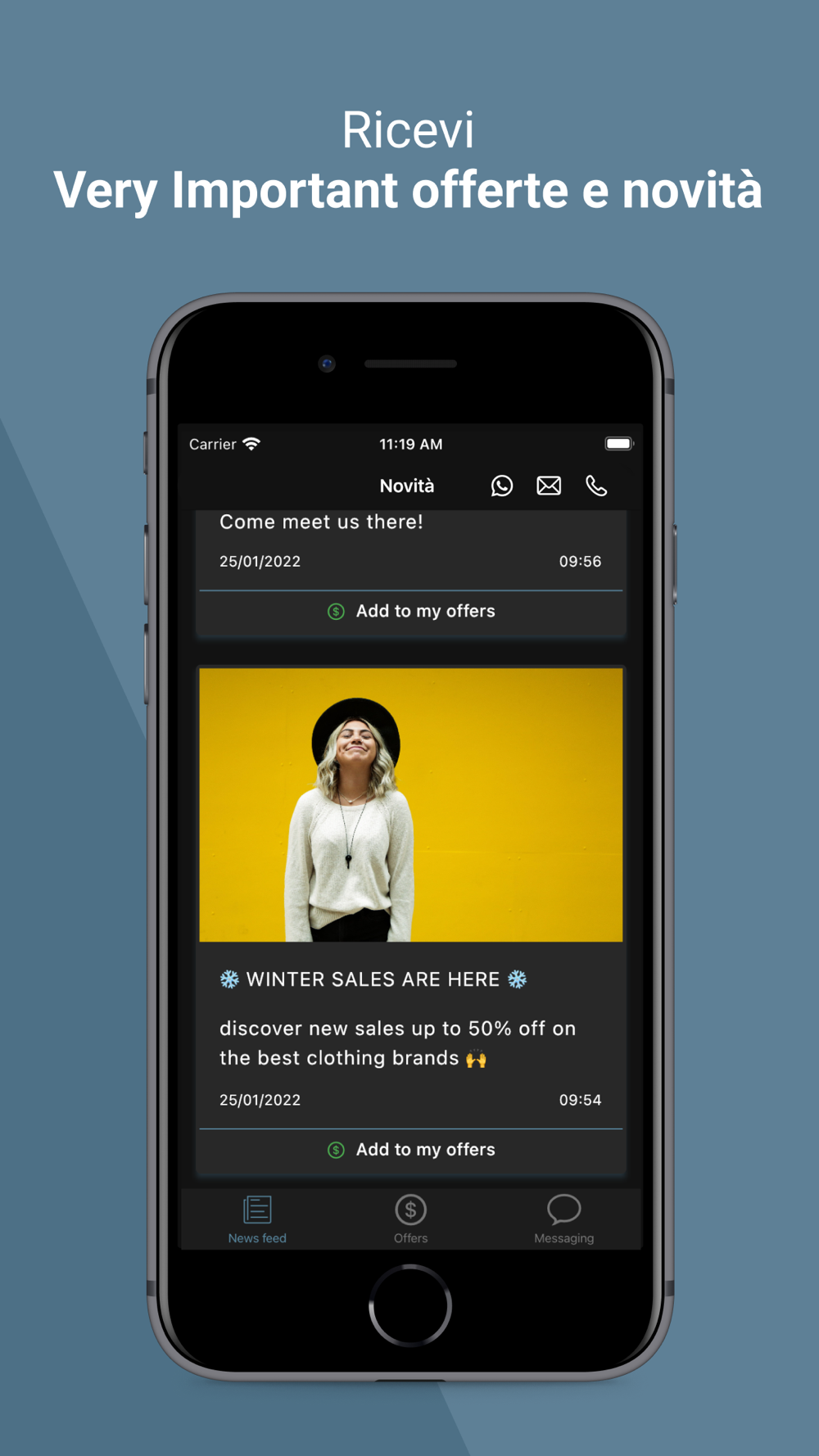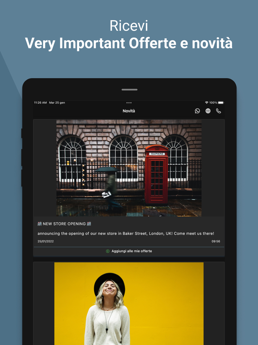 Scaricando VIC, riceverai novità, promozioni e offerte esclusive, tutto questo occupando solamente lo spazio di una foto!