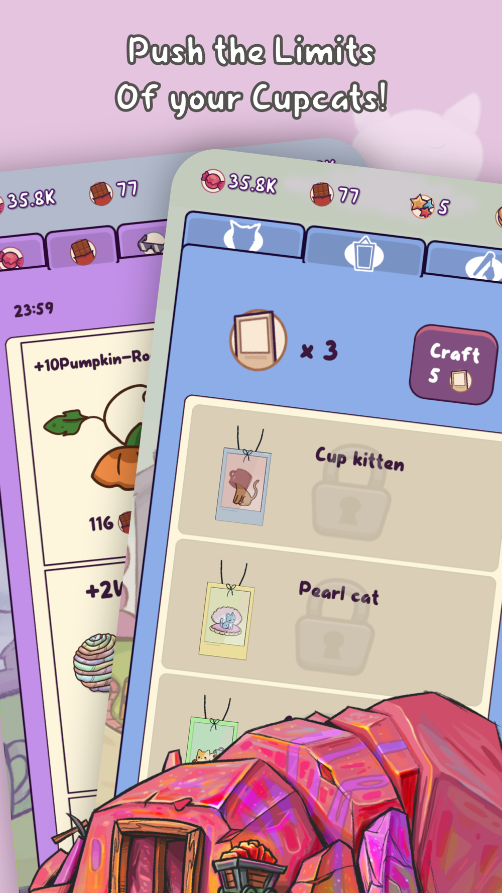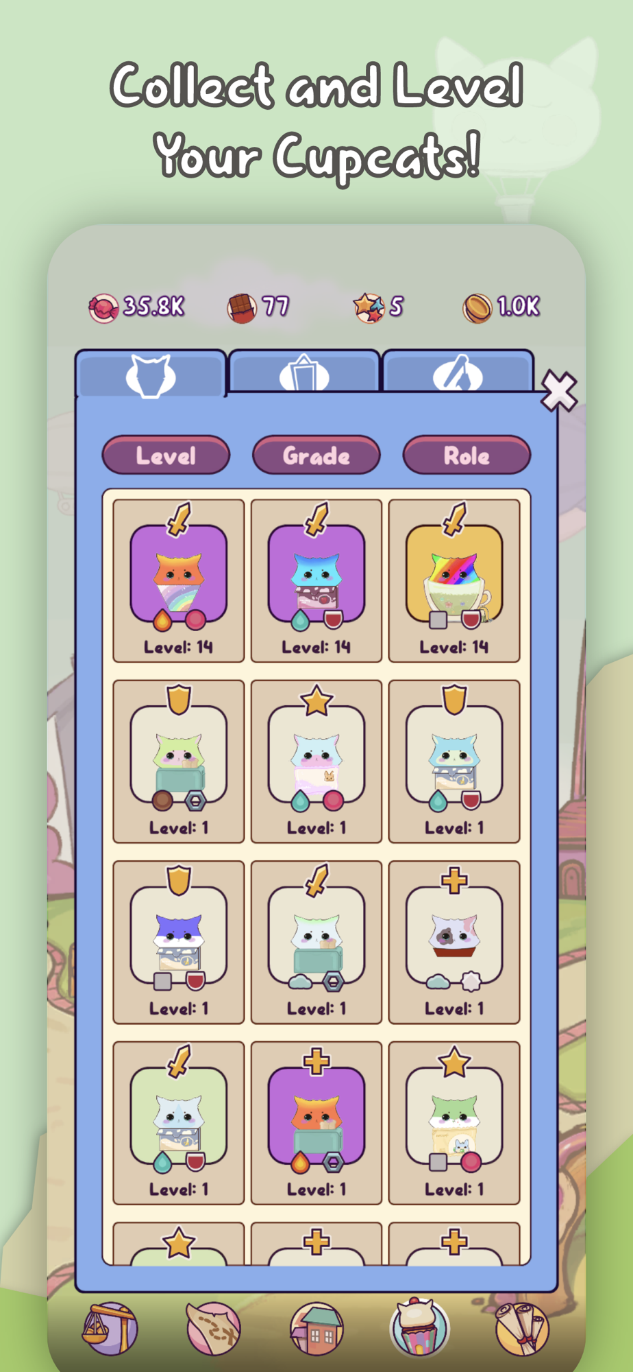 You can obtain resources through the Candy-Mines, 40+ level campaign, infinite battle tower and mini-games to make your Cupcat team stronger.