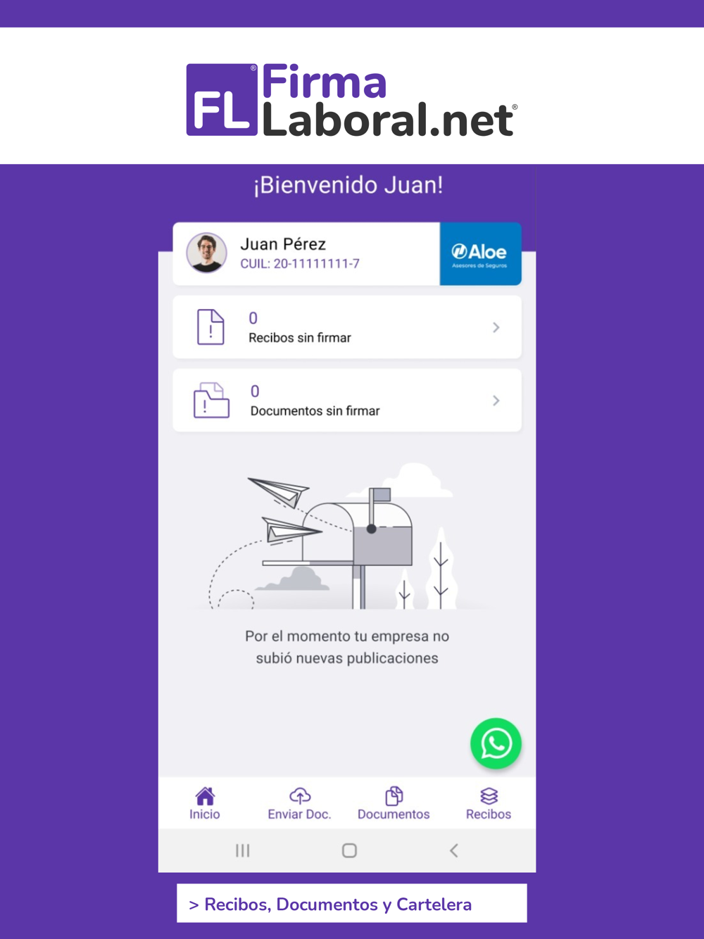 Su personal podrá disponer en cualquier momento y lugar sus recibos, ademas de poder utilizar nuestra App para enviarle información a la empresa e inclusive firmarla digitalmente. Su personal podrá subir y autogestionar: