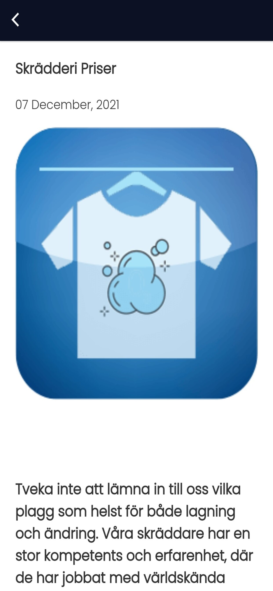 Vi är stolta över att noggrant tvätta och vika kläder med största omsorg och uppmärksamhet om detaljer. Vi känner oss säkra på att du kommer att hitta oss som den bästa leverantören av tvättservice, inklusive upphämtning och leverans.