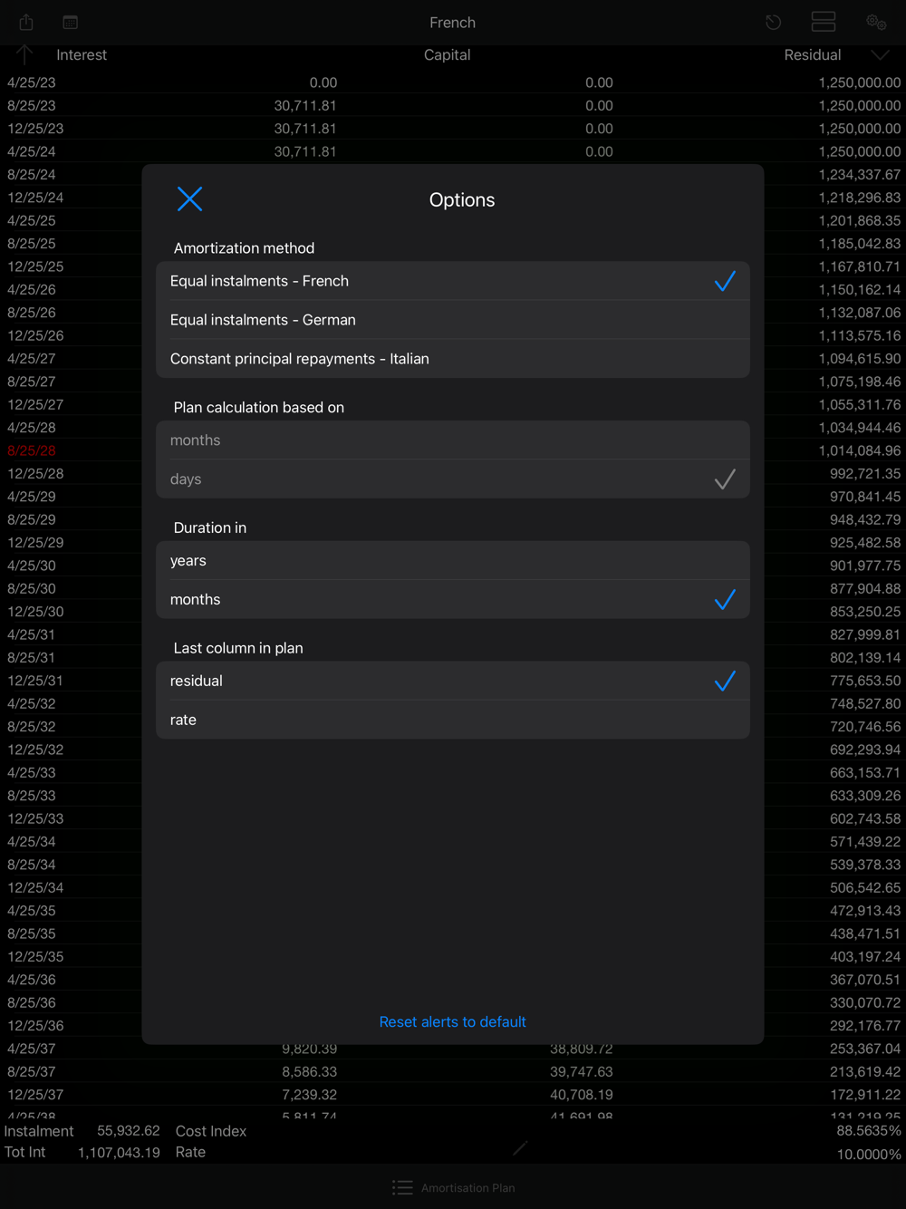 Loans Ruler can calculate all the variables of financial amortization plan. You can set a target value and adapt all other to fit your needs.