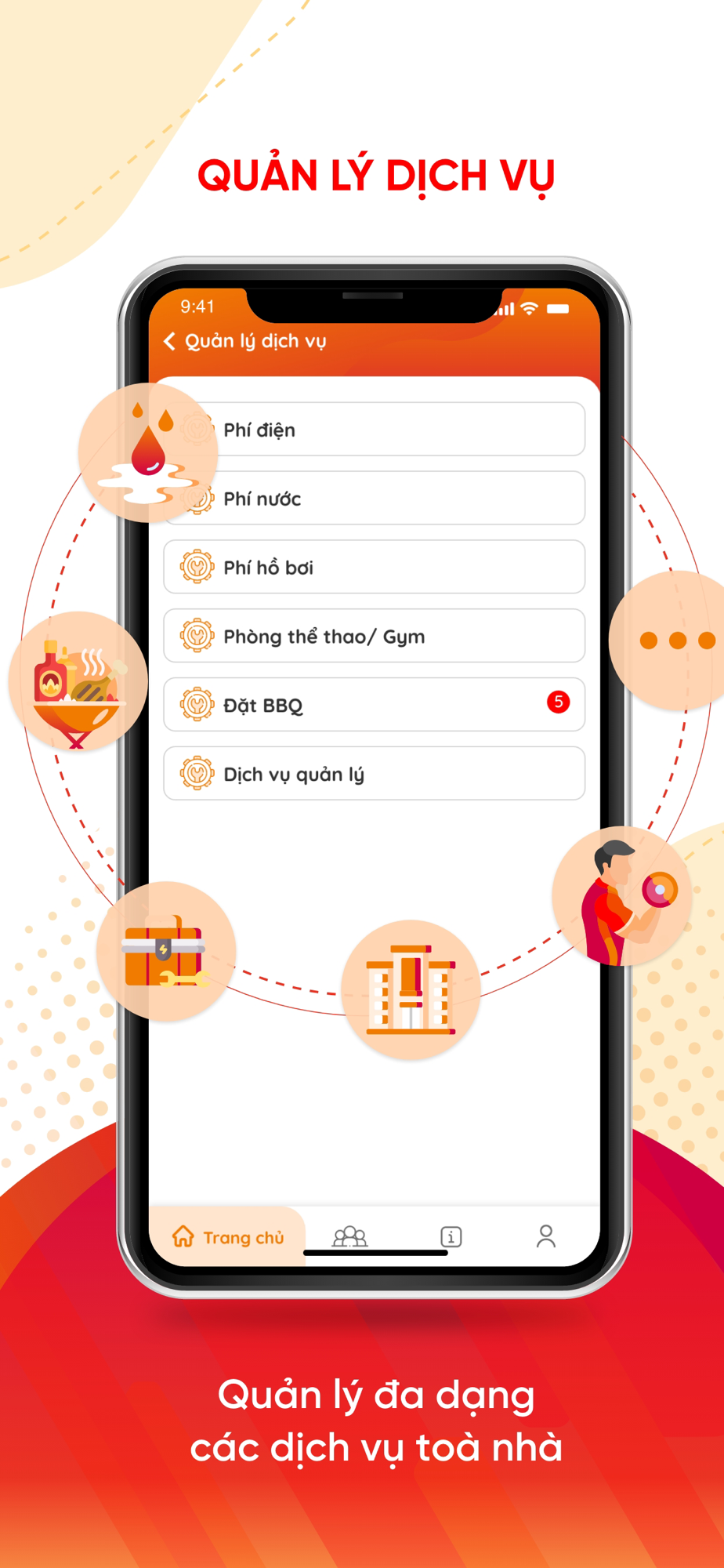 - Gửi yêu cầu bảo trì, đặt cơ sở vật chất và được thông báo về các cập nhật quan trọng của tòa nhà.