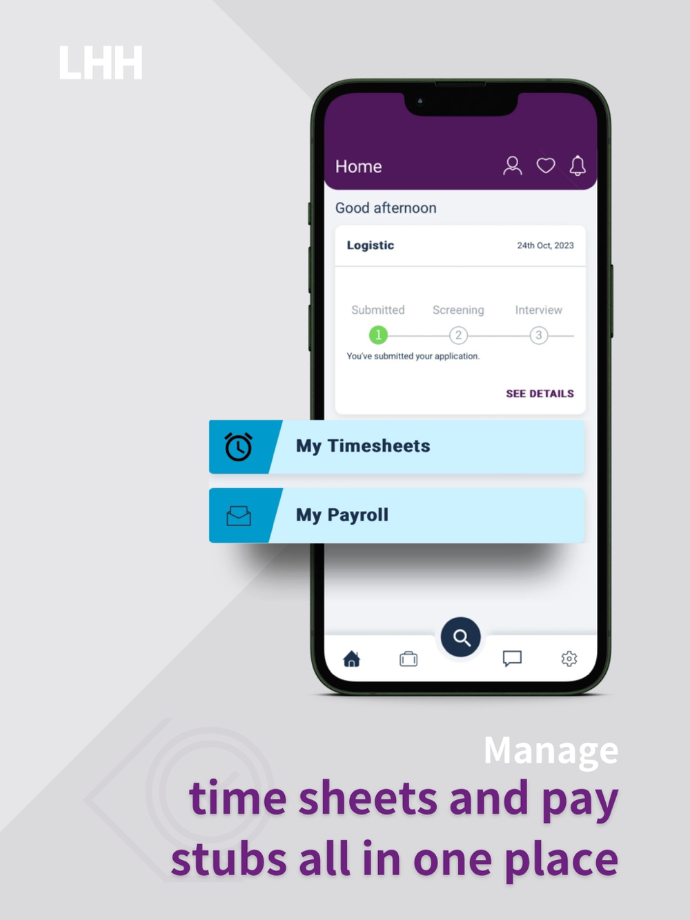 The LHH app is your one-stop digital staffing agency to find, apply, and manage your next job easily. It's free and easy to use! Everything you need is right at your fingertips.