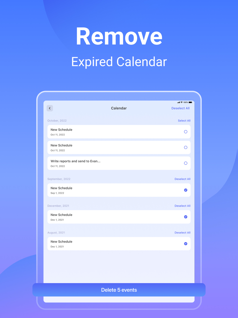 Clean Up Calendar Reminders:Delete expired or unnecessary reminders, events and appointments from your calendar with a few taps.