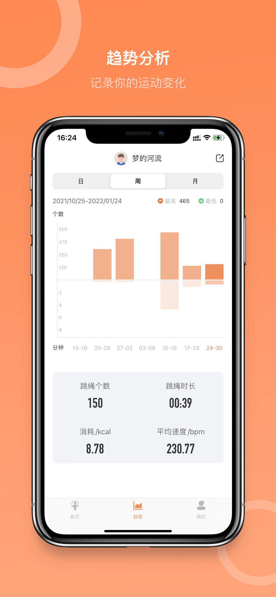 【运动趋势】分析您的跳绳数据趋势变化,多维度查看运动量变化。