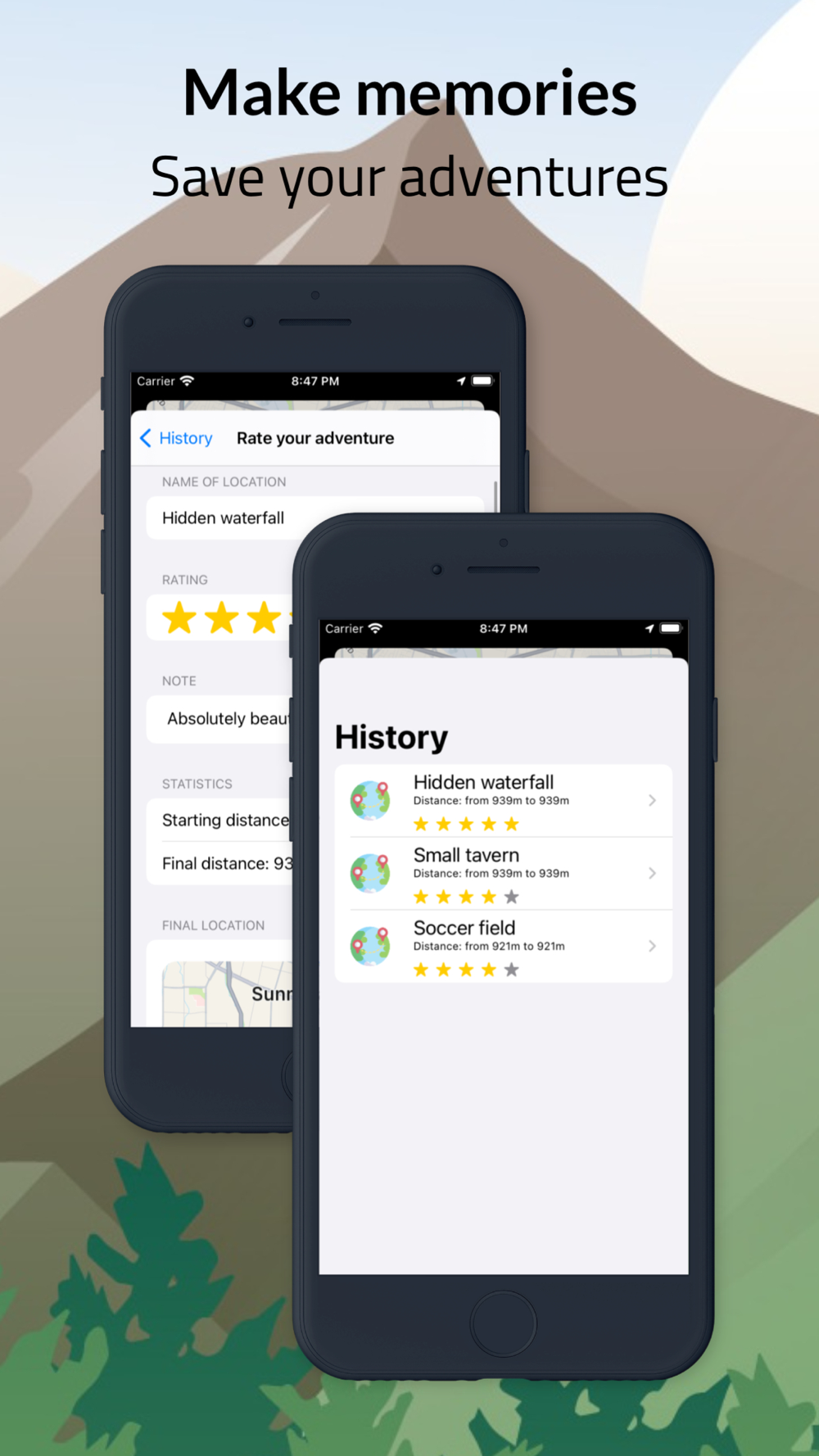 Rate the visited locations and write down some notes about interesting things you discovered.