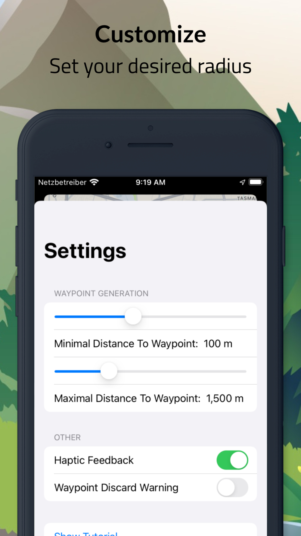 GoRandom also lets you decide how far you want to go. Just set your desired range in the settings and travel exactly how far you want to.