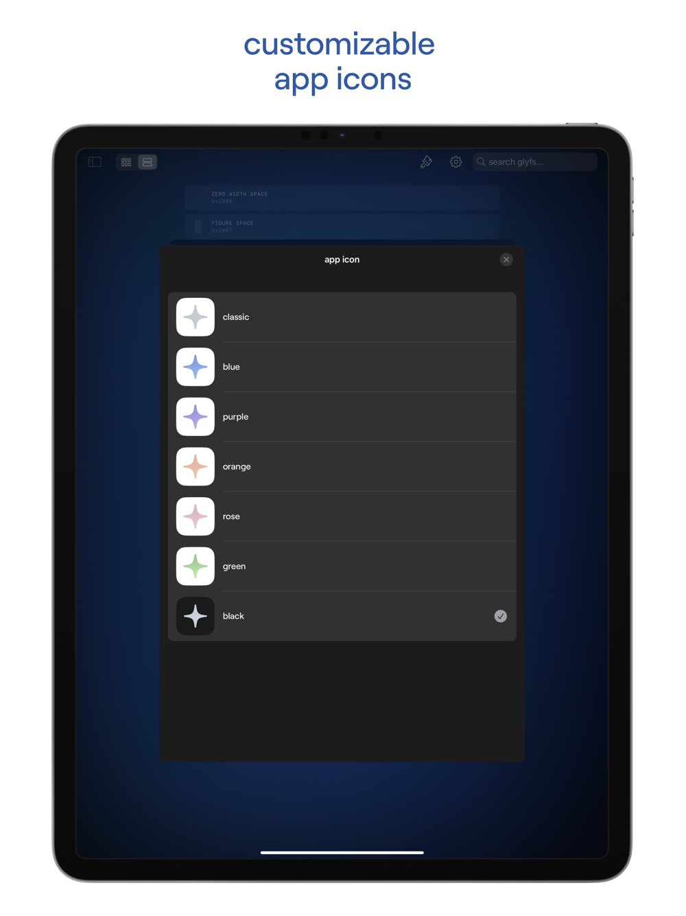 glyfs pro enables full access to the app content, features and capabilities. Available via a subscription or a one-time purchase. Supports Universal purchase (buy once, enjoy across all of your iOS, iPadOS, macOS devices) and Family Sharing.