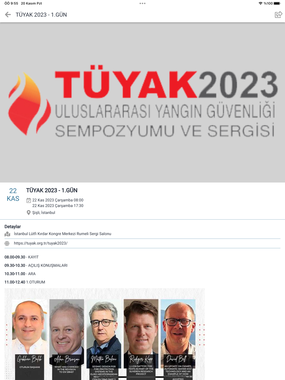 TÜYAK uygulaması ile Türkiye Yangında Korunma ve Eğitim Vakfı’nın düzenlendiği tüm uluslararası sempozyum ve sergileri takip edebilirsiniz.