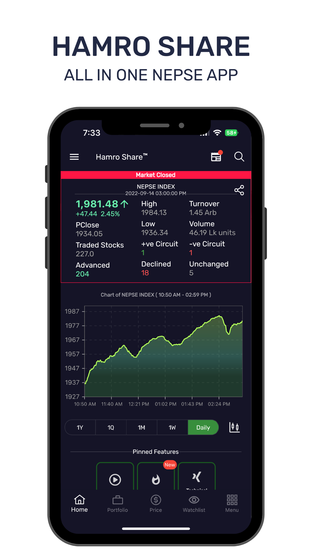 Hamro Share is the destination for mobile NEPSE users. On Hamro Share, the Stock market data is one click away. Whether you’re a beginner, an enthusiast, or a seasoned pro, there’s something for everyone on Hamro Share. All you have to do is tap, and view what you like, skip what you don’t, and you’ll find an endless stream of data. From your morning coffee to your afternoon errands, Hamro Share has the content guaranteed to make your day well not in the market crash :)