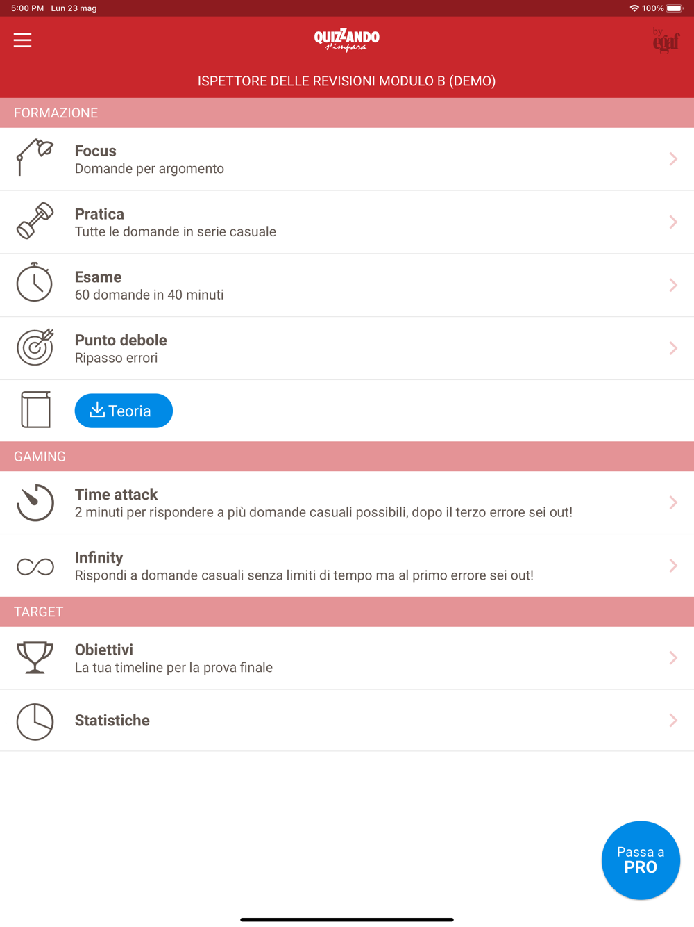 La versione PRO, completa di tutti i quiz aggiornati + Libro di Teoria, può essere attivata solo acquistando un codice di attivazione.