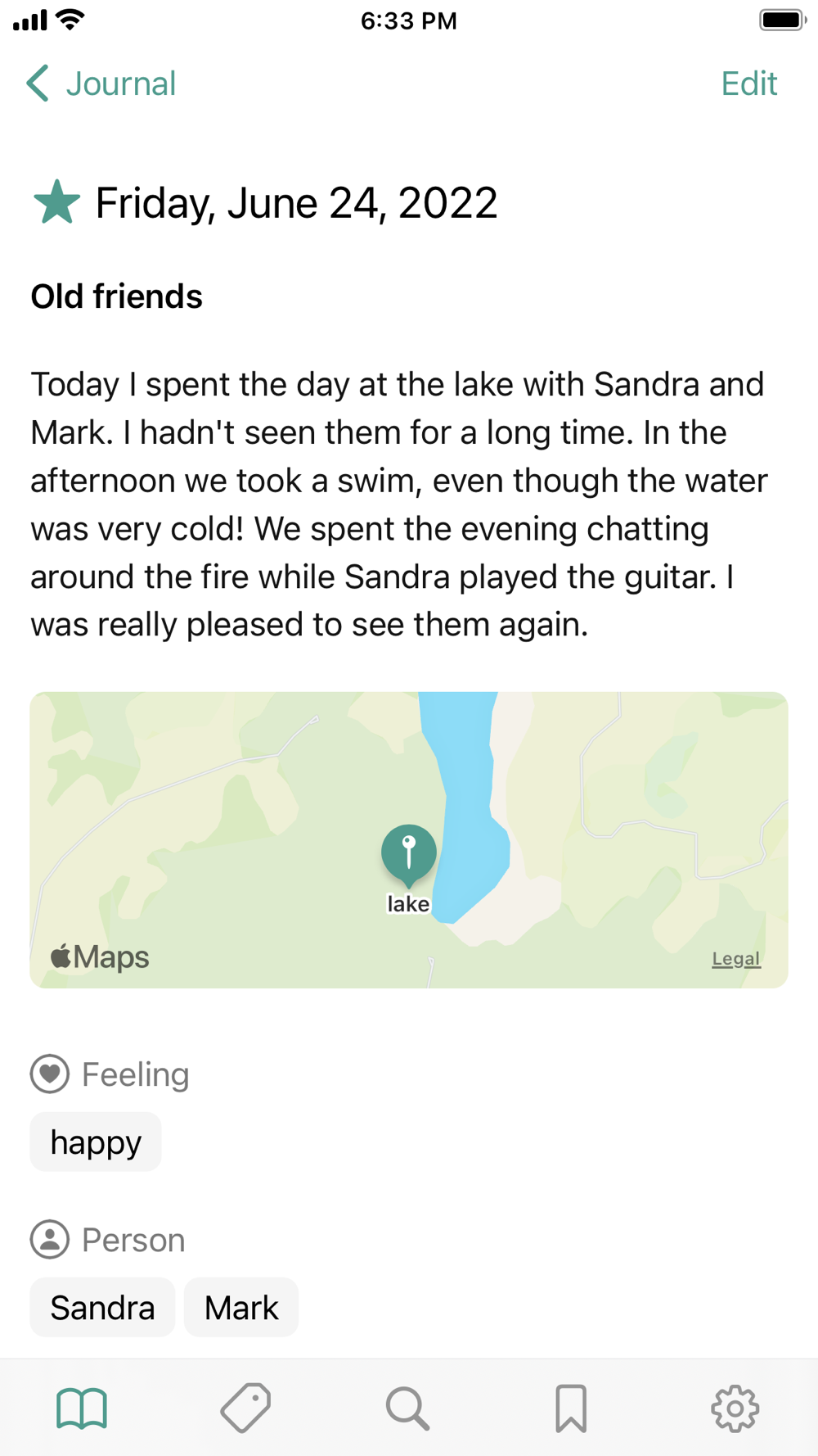 Set up a passcode and use Touch ID or Face ID to keep your journal safe from prying eyes.