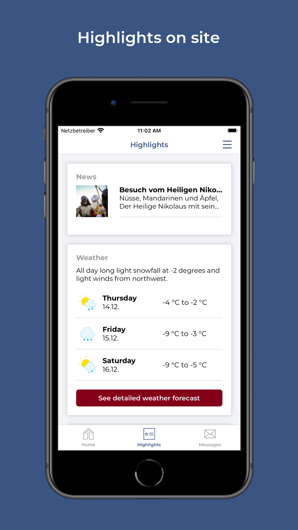 You’ll receive the latest news as a push notification on your smartphone or tablet as well as via our own hotel newspaper – that way you will always be up-to-date with what’s going on.