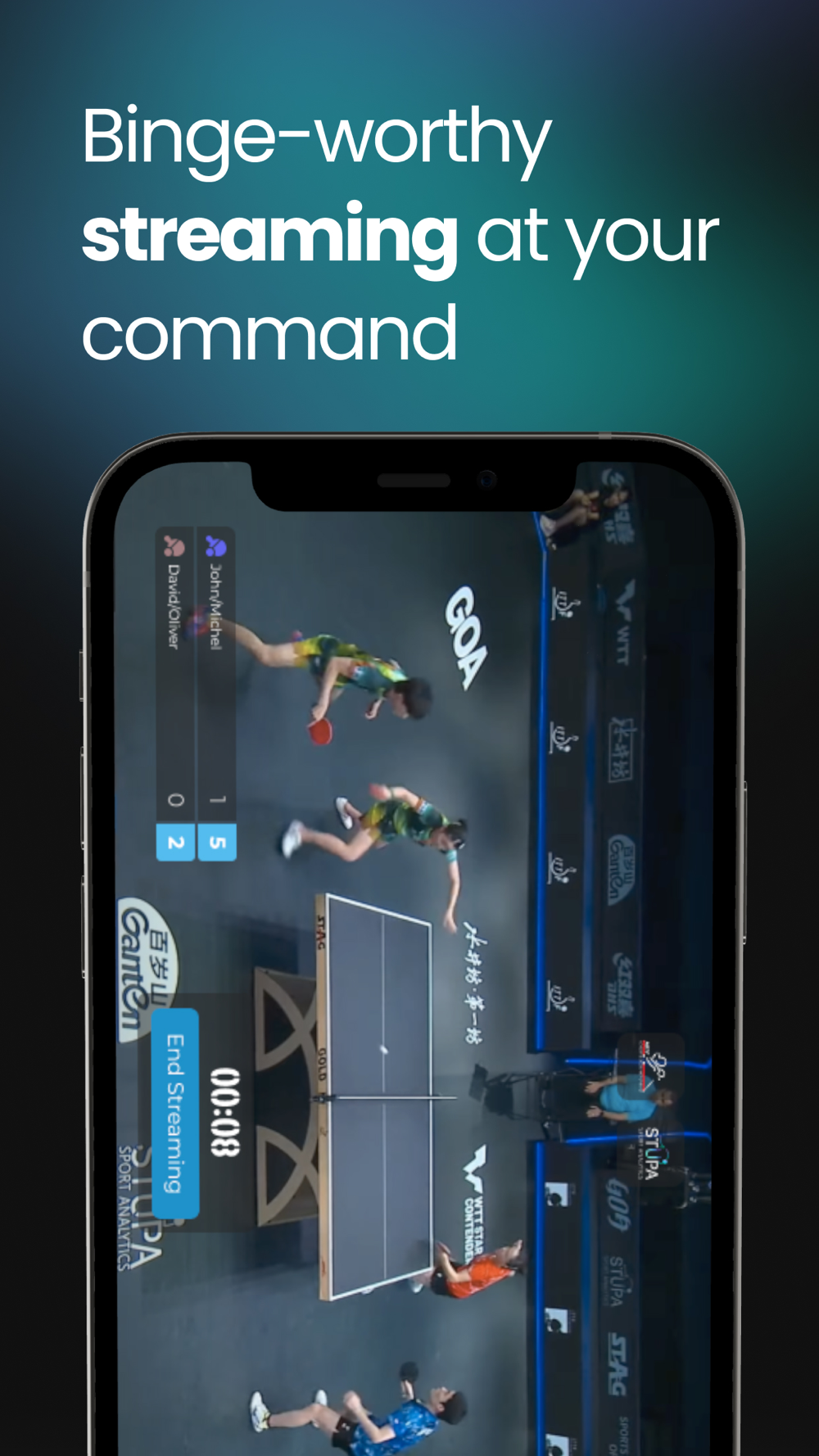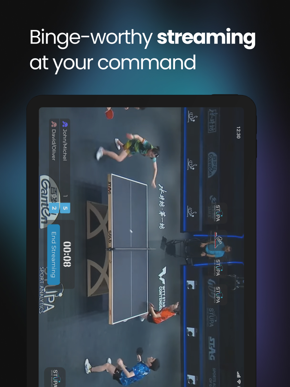 A mobile app, completely synced with the web based platform tt.stupaevents.com to administrate & control a tournament single handedly. Capable of managing & streaming the tournament seamlessly, also manages officials, player/tournament data & live scoring from one place securely. Stream as many tables as needed without leaving any action unwatched for the viewers.