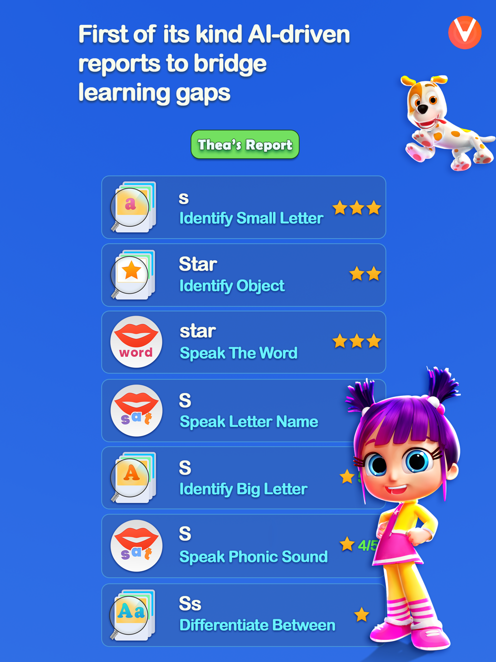 Our unique AI-driven reports bridge the learning gap to know where your child needs attention. You will know if a child faces a problem saying the letter name or identifying a letter.