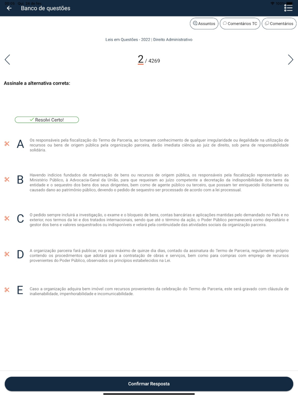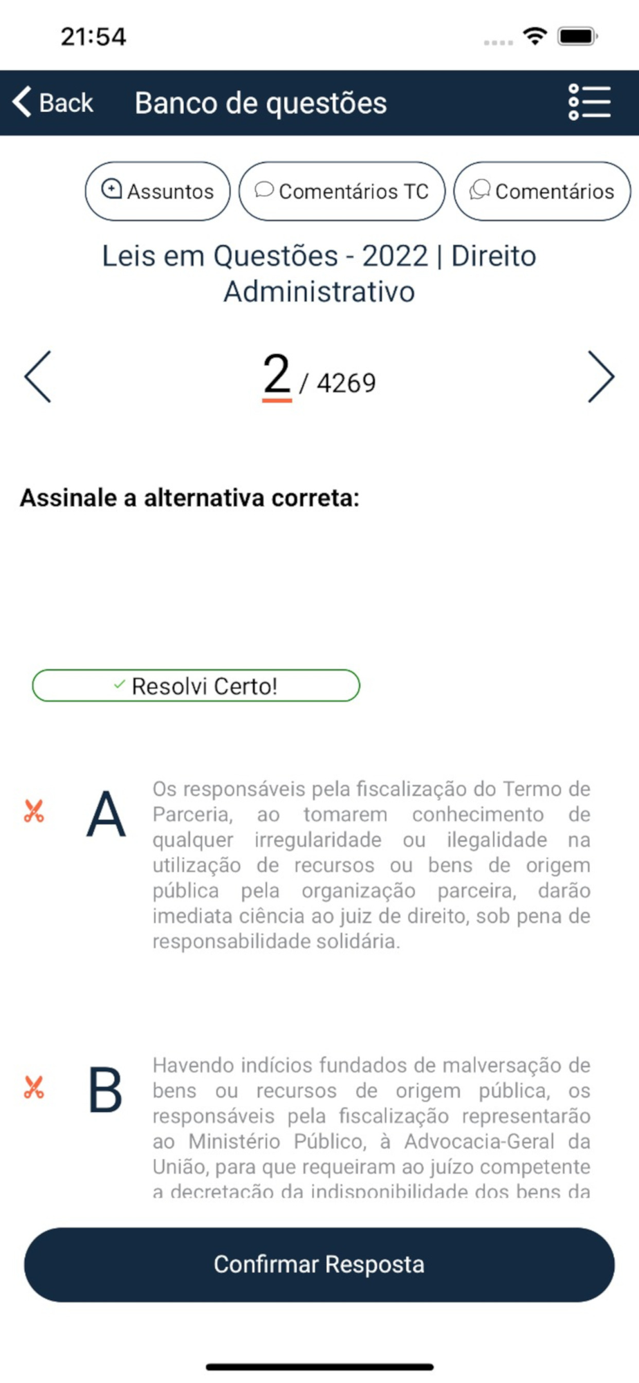 Possibilidade de resolver questões comentadas, criar simulados, acompanhar estatísticas, participar de comunidades, chat e criar cadernos de estudos.