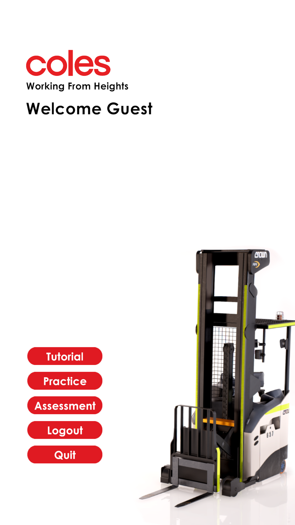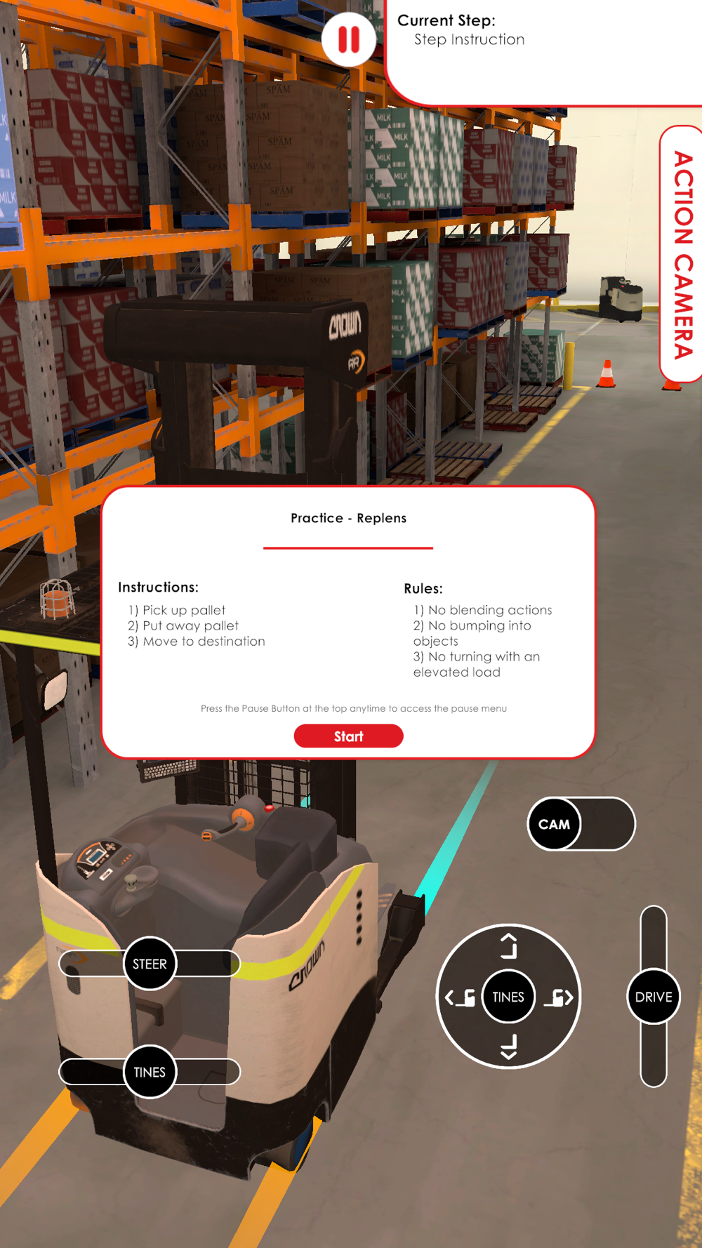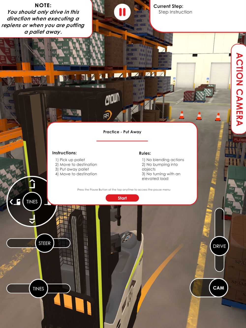 Supplementary application for becoming comfortable with operating a forklift while undertaking pack and replens tasks.