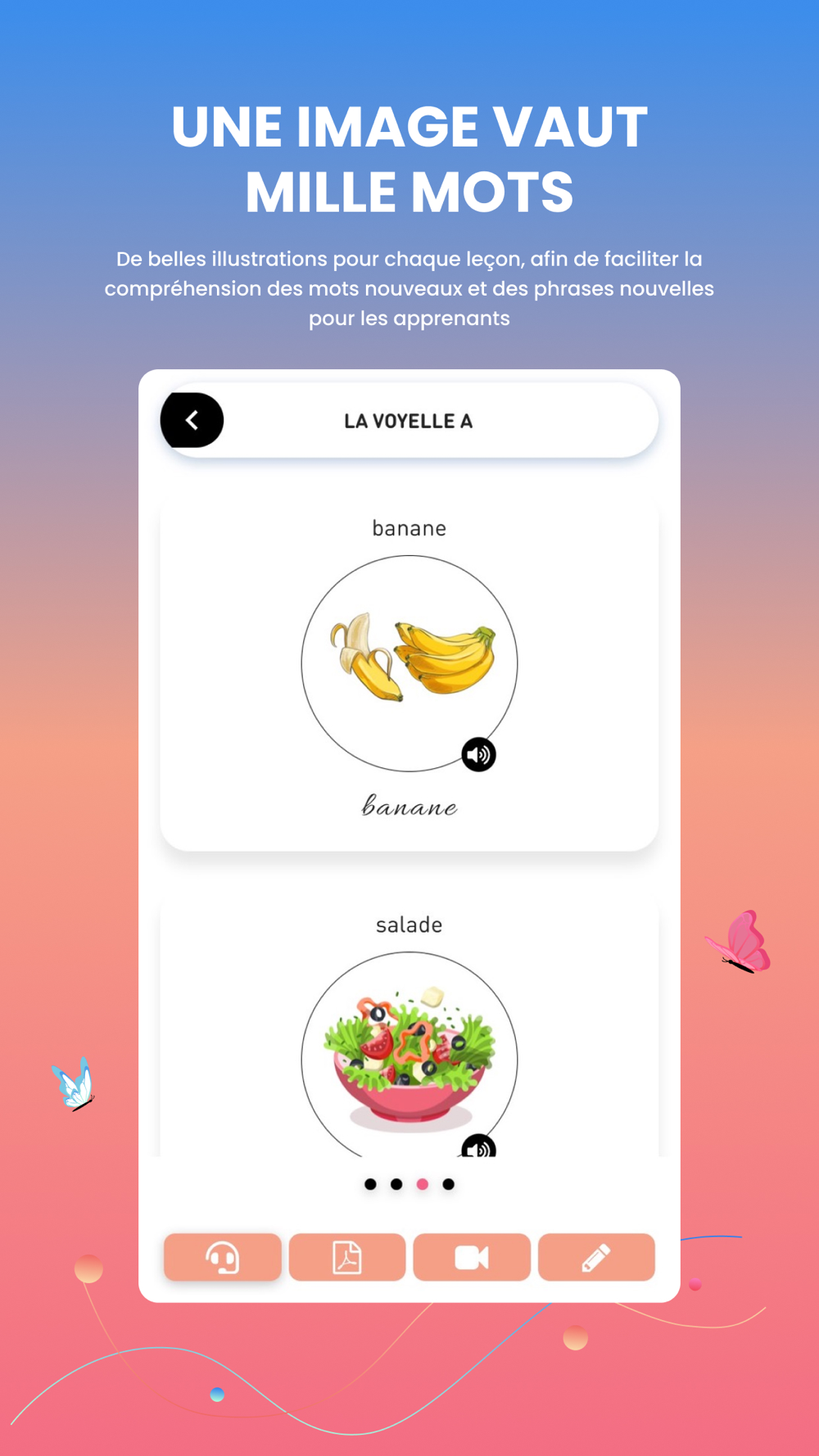 • Des leçons simples et progressives, commençant par l'alphabet jusqu’aux phrases, en passant par les syllabes et les mots.