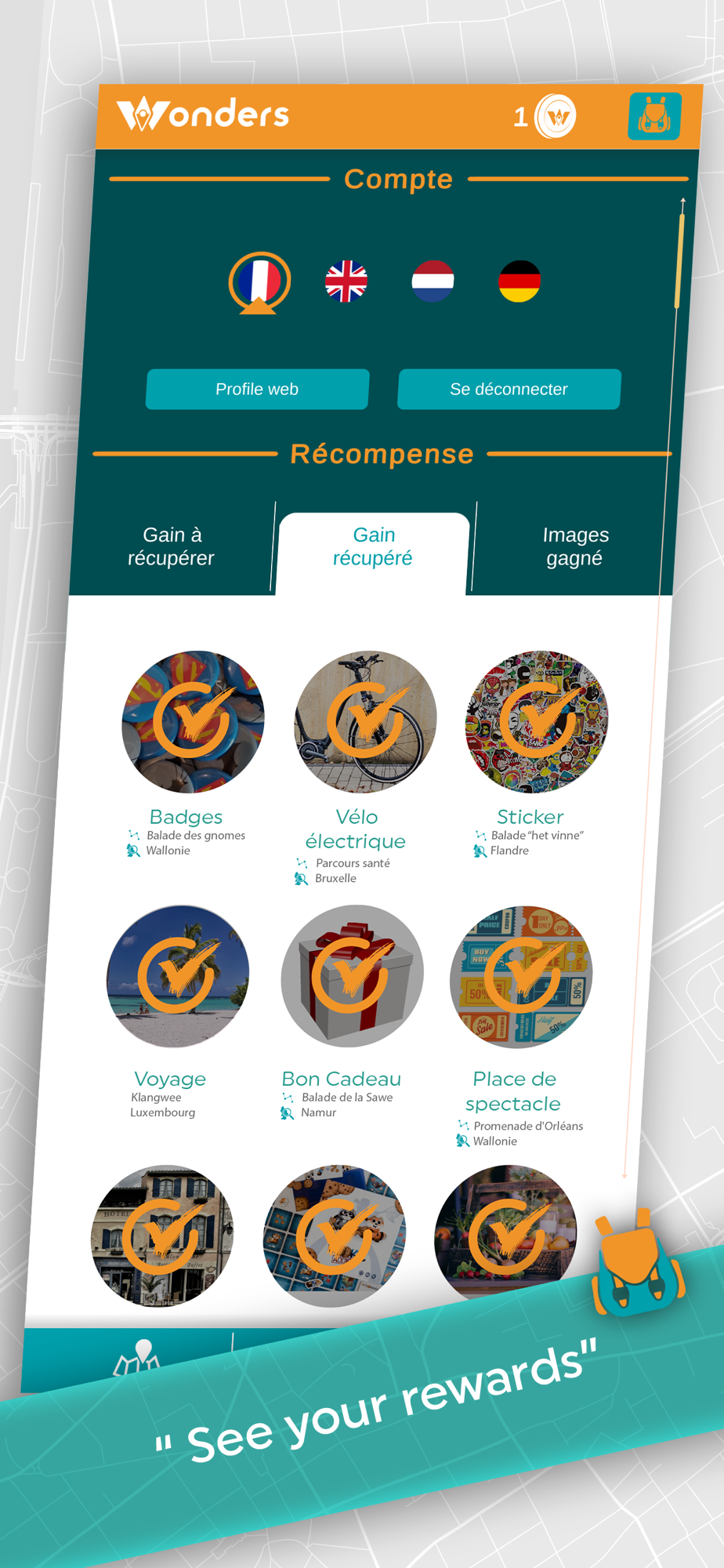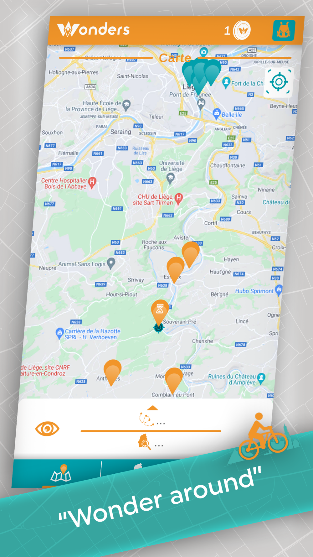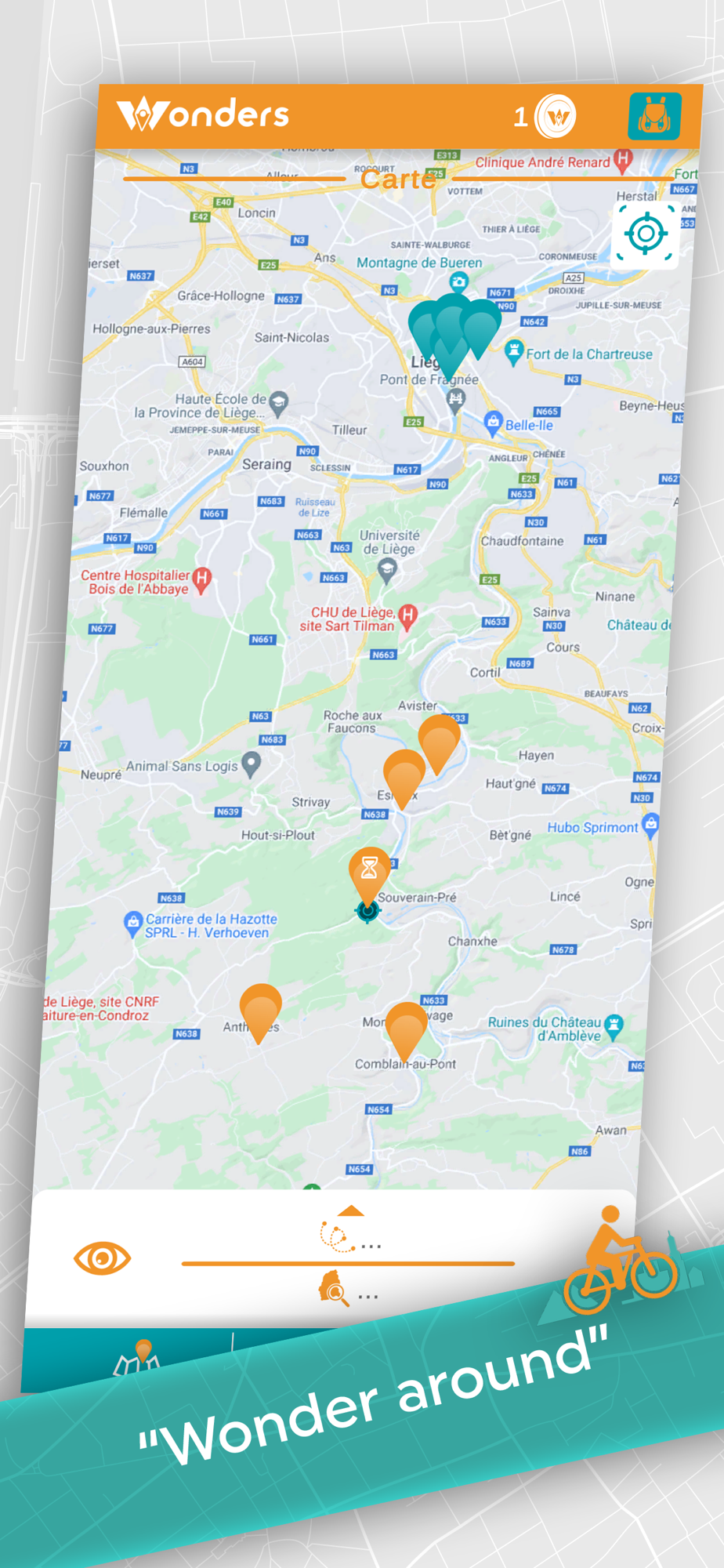 The Wonders application allows you to discover a territory through quests. Each territory contains a series of places to explore in order to collect a virtual treasure (symbolised by a "Wonder").