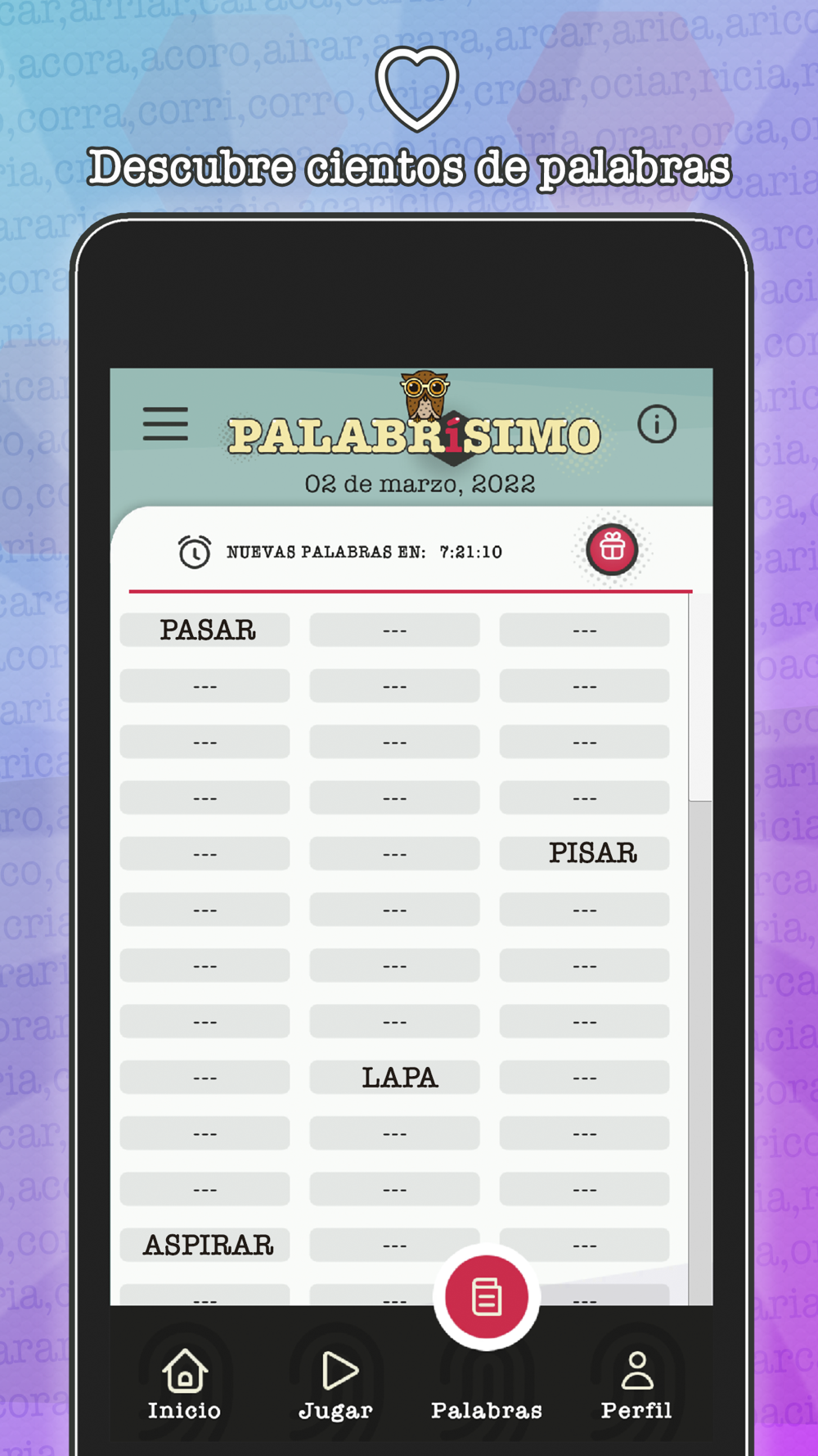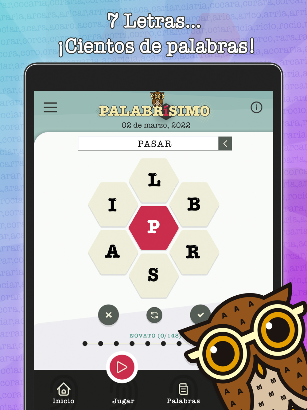 Palabrísimo es un juego de buscar, aprender y descubrir palabras ocultas combinando 7 letras, inspirado en el fantástico Spelling Bee del New York Times y el Paraulògic, con nuevas características y en ESPAÑOL. Cada día tendrás nuevas letras y una nueva base de datos de palabras a descubrir.