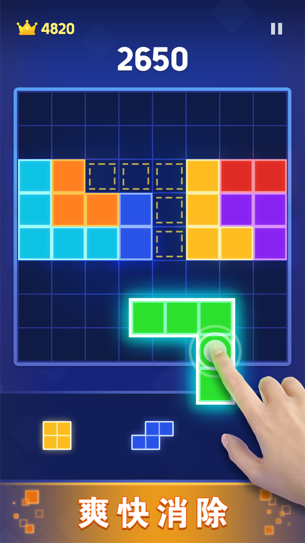快乐爱消除是一款类似俄罗斯方块的益智游戏,挑战在有限的空间消除尽可能多的方块以获得更高的得分。这也是一款操作简单但颇具挑战性的消除游戏,它有逻辑技巧和布局策略,每一步都决定了你能否获得高分。