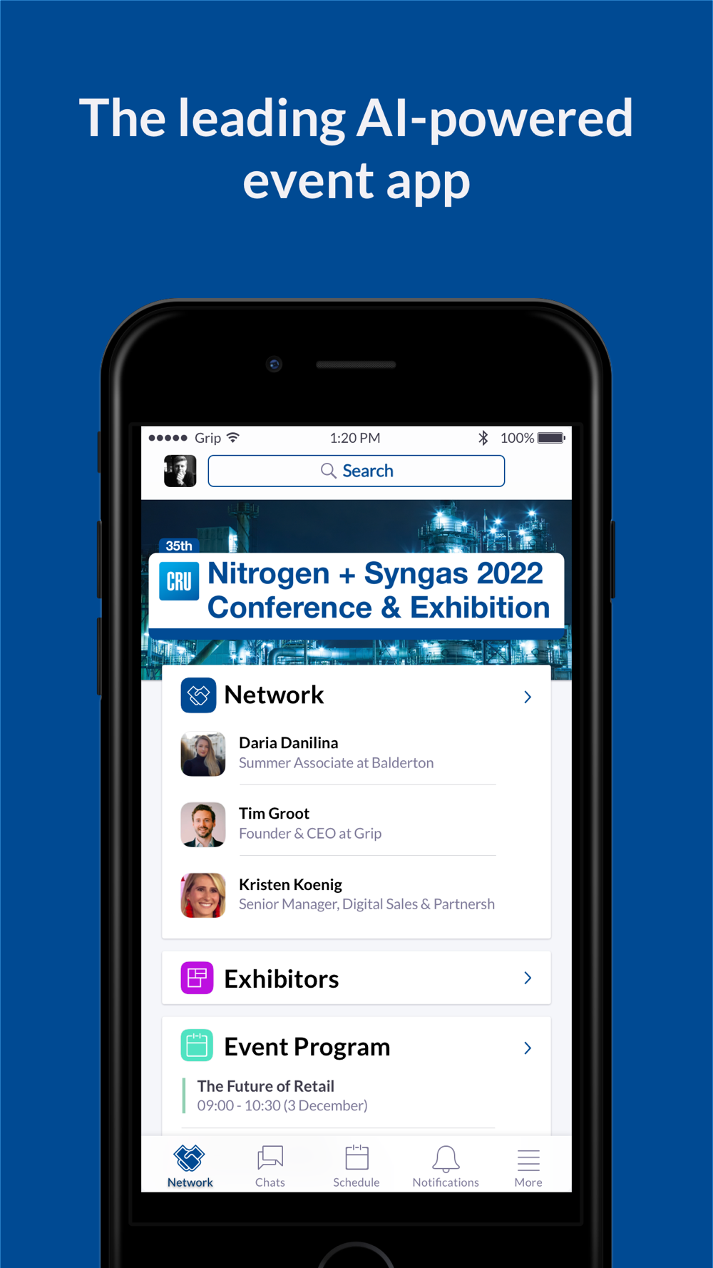 CRU Events’ networking app, powered by Grip, allows you to easily connect with other participants and effectively plan and maximise your time at our market-leading conferences.