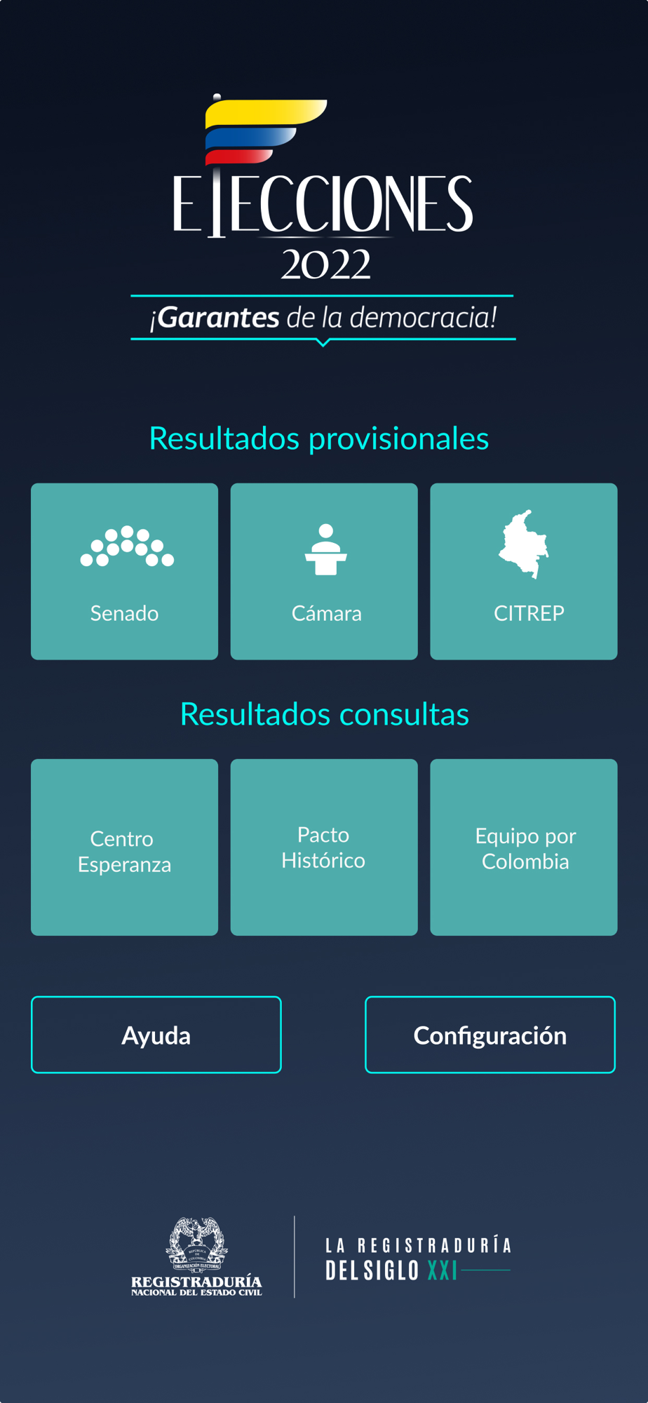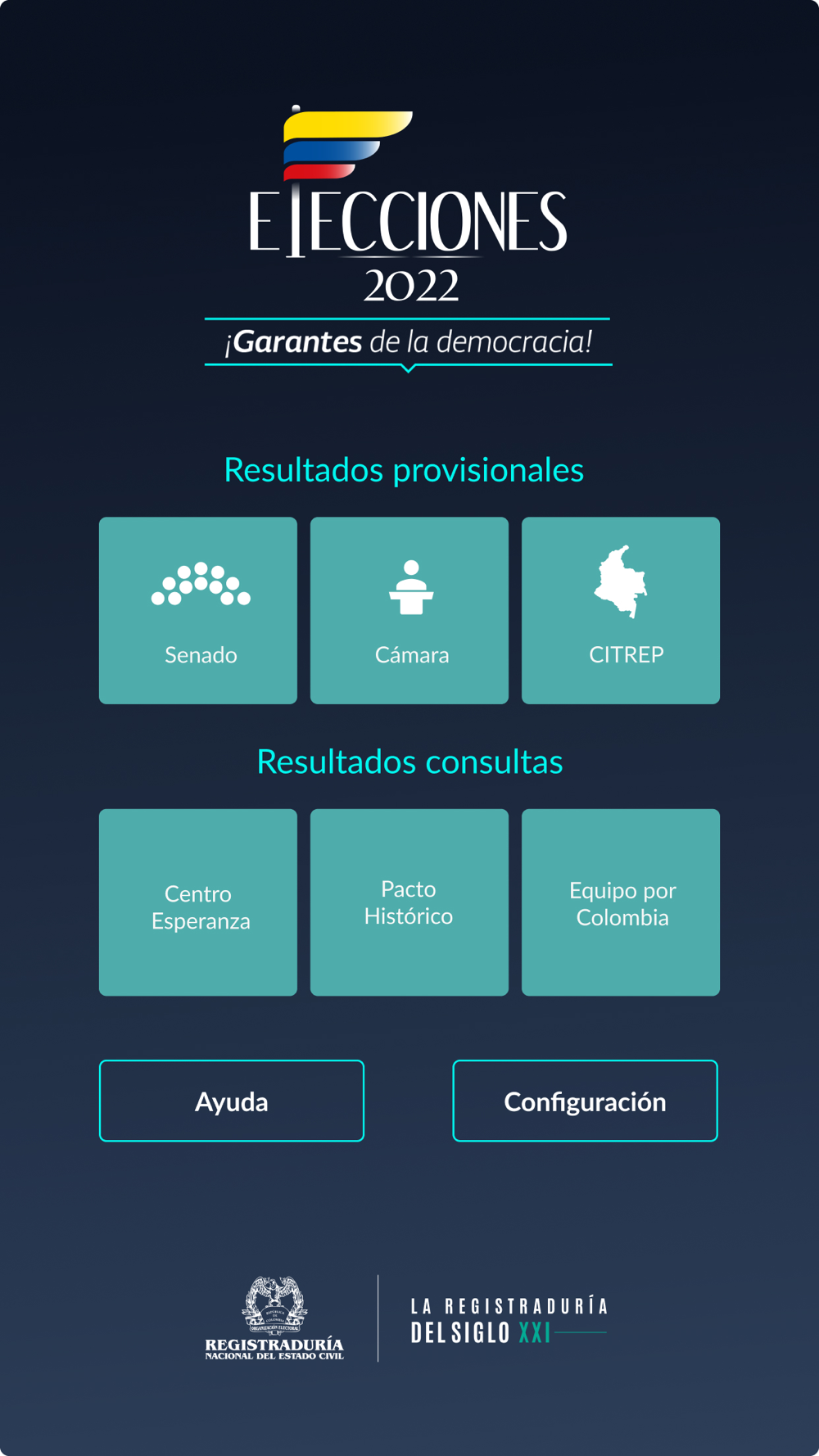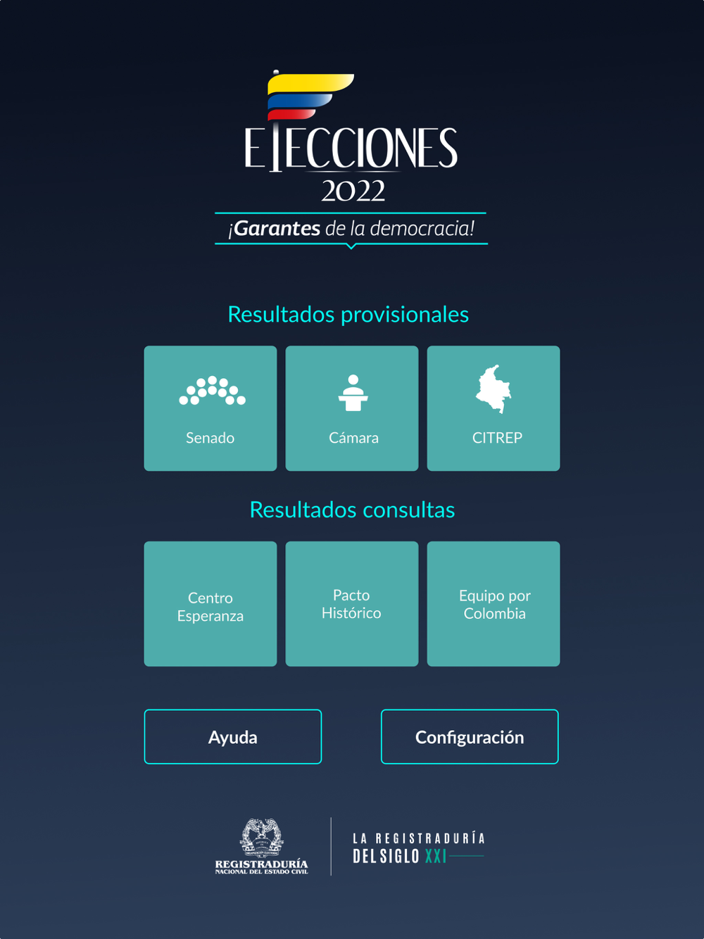 La aplicación “Elecciones Colombia 2022” es la herramienta oficial y gratuita que Registraduría Nacional del Estado Civil de Colombia, ha dispuesto para que los ciudadanos consulten los resultados de Preconteo (resultados preliminares no oficiales y sin fuerza vinculante), de las elecciones legislativas, que se celebrarán el próximo 13 de marzo de 2022.