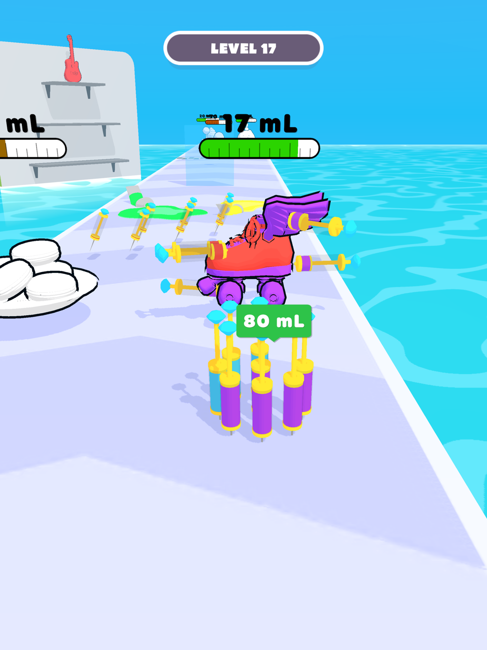 Collect syringes and paint objects with whatever paint you filled them with!