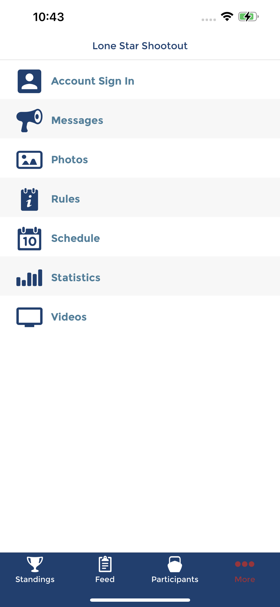 View the tournament rules, schedule of events, photos, videos, and live scoring activity feed.