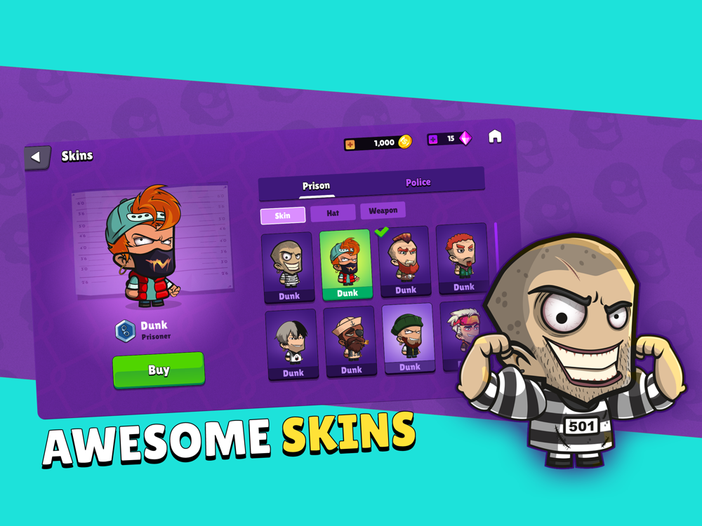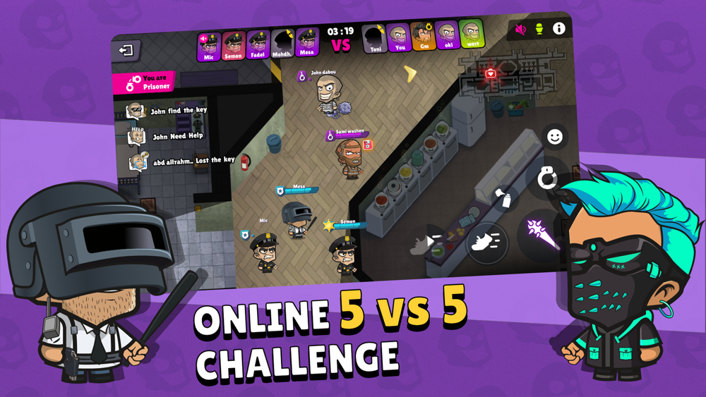 2- Police and Prisoner teams: The game's exciting structure includes Police and Prisoner teams. Whether you want to be the enforcer of the law or fight to prevent the prisoners from escaping, determine your winning strategy.