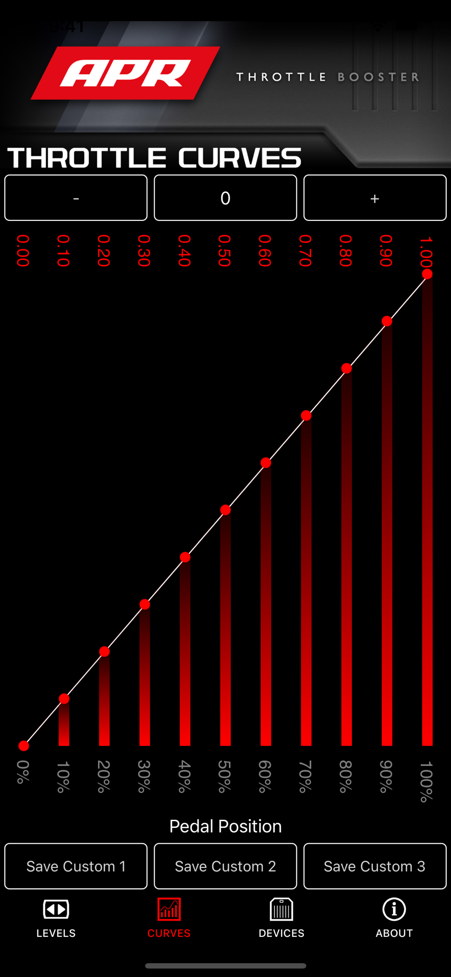 The APR Throttle Booster app allows you to wirelessly tune your vehicle’s throttle pedal for an instant response and finely tuned sensitivity to your desire. The app comes pre-loaded with 5 preset throttle response curves. Optionally you can tune the profile on your own. Go soft or lightning-fast – it’s your choice!